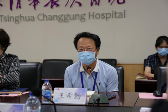 王希勤首先代表学校对清华长庚医院在支援全校在京教职工核酸检测工作中的付出表示感谢,对医院的执行力和工作效率予以充分肯定。他指出,附属医院的中国特色现代化改革是清华医学发展规划的重要内容。结合在清华大学综合改革工作中的心得体会,他强调,中国特色现代化临床医院的治理体制,对内要坚持党委领导下的院长负责制,坚持学术和行政并行协调;对外要做到医教研统筹、公益性与社会化统筹、预防医疗与康养统筹等。医院党的领导要和业务工作深度融合,必须坚持实事求是的思想路线,必须坚持以人民为中心的价值导向,必须形成团结协作的组织文化和组织力。在具体工作中要把人民生命安全和身体健康作为第一价值追求,要坚持医疗的公益性、落实以病人为中心、以教职工和学生的健康需求为要务,与社区建立持续良性互动。要结合深化公立医院综合改革和建立现代医院管理制度的要求,处理好关系体系、价值体系、制度体系、组织体系和运行体系五大体系的关系。