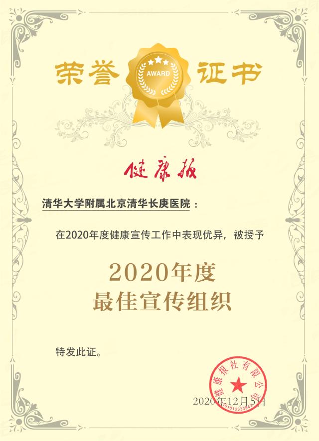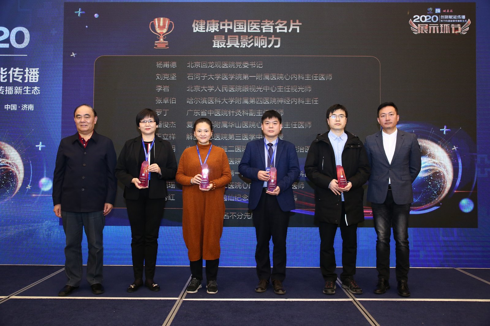 北京清华长庚医院12月9日电 12月5日,由健康报社、济南市人民政府共同主办的“2020第七届互联网+健康中国大会”在山东省济南市举行。在“创新赋能传播·构建健康传播新生态”主题论坛中,清华大学附属北京清华长庚医院获“健康中国政务新媒体平台优质医疗机构类健康号”及“2020年度最佳宣传组织奖”奖项;康复医学科徐泉医师获“健康中国医者名片最具影响力/优秀创作者”奖项。