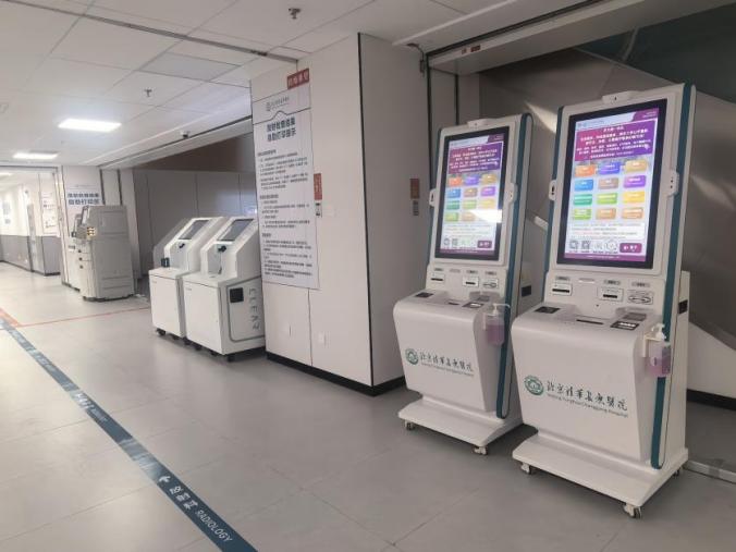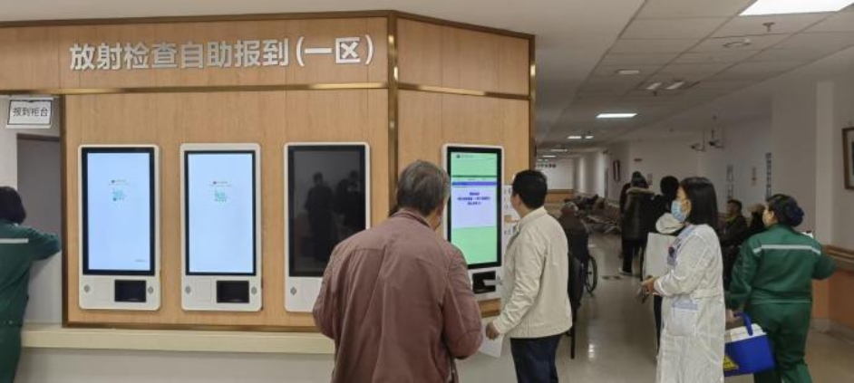 2、影像检查报到:在原有人工窗口报到的基础上,医院新增放射检查自助报到区,检查当天,患者按照预约提示信息到指定检查报到区,扫描医嘱单上的二维码即可完成自主报到,系统自动安排检查顺序,大屏幕实时显示叫号信息,有效缩减了排队等候时间。