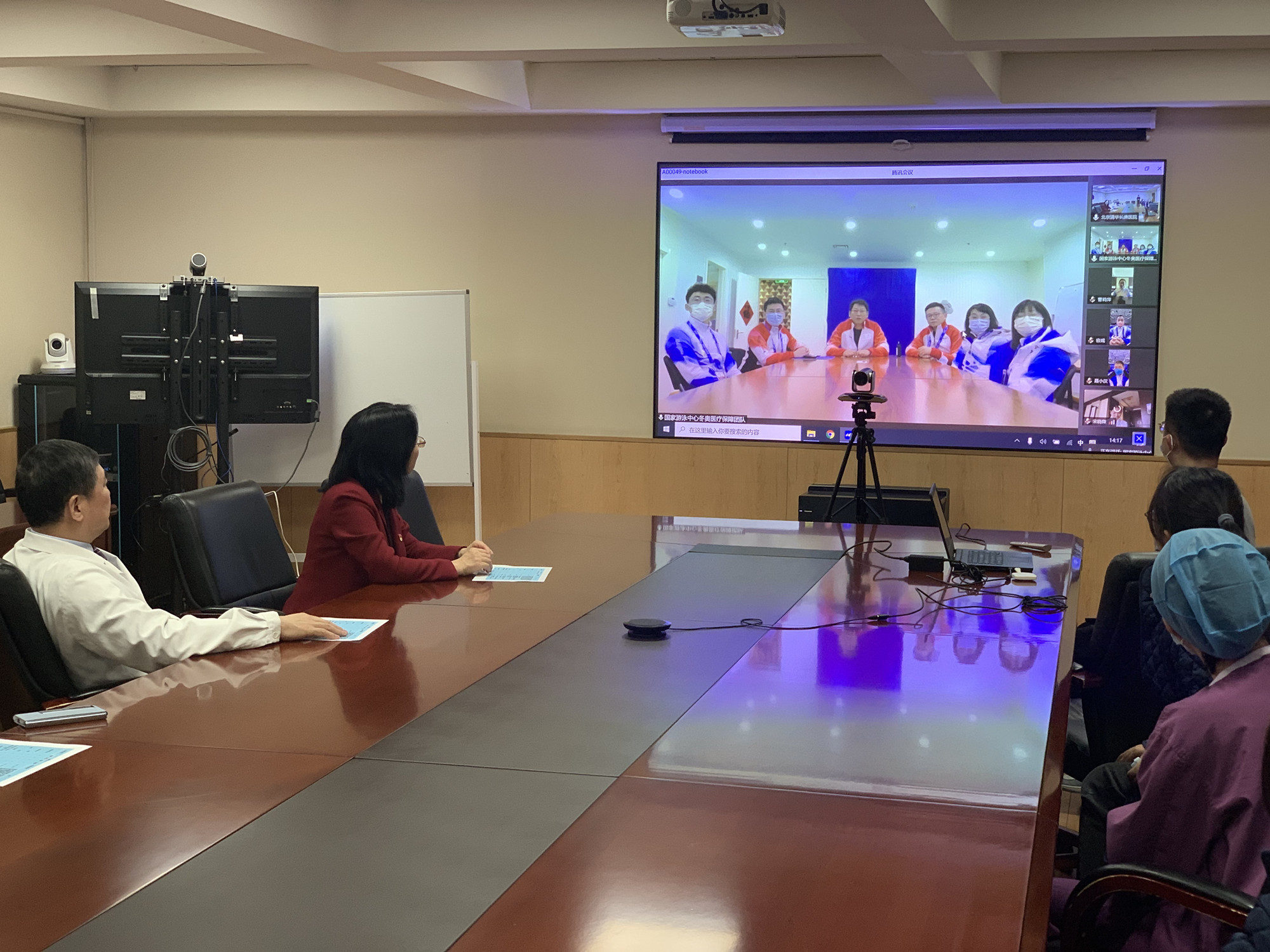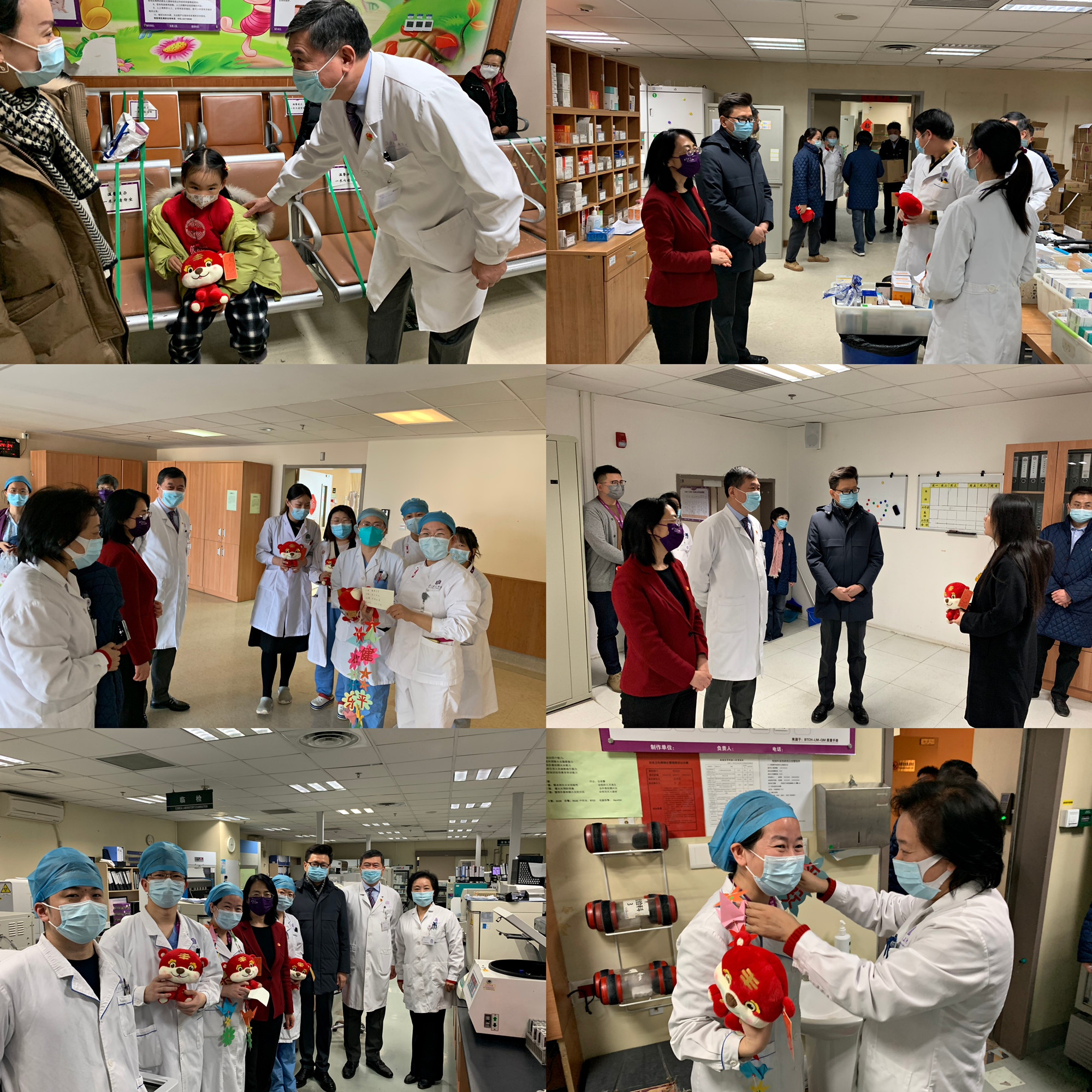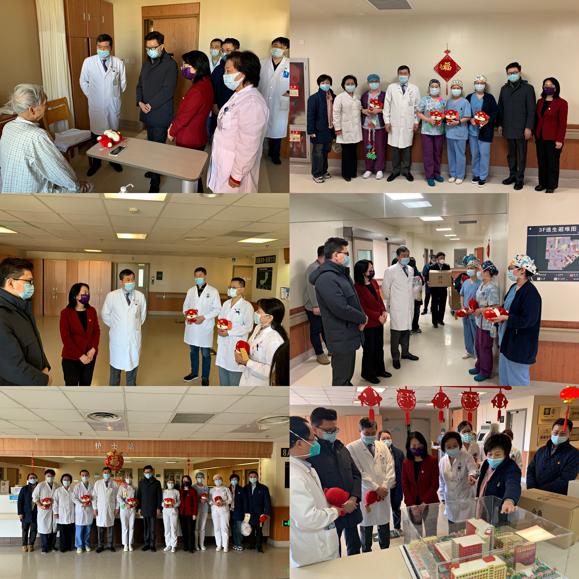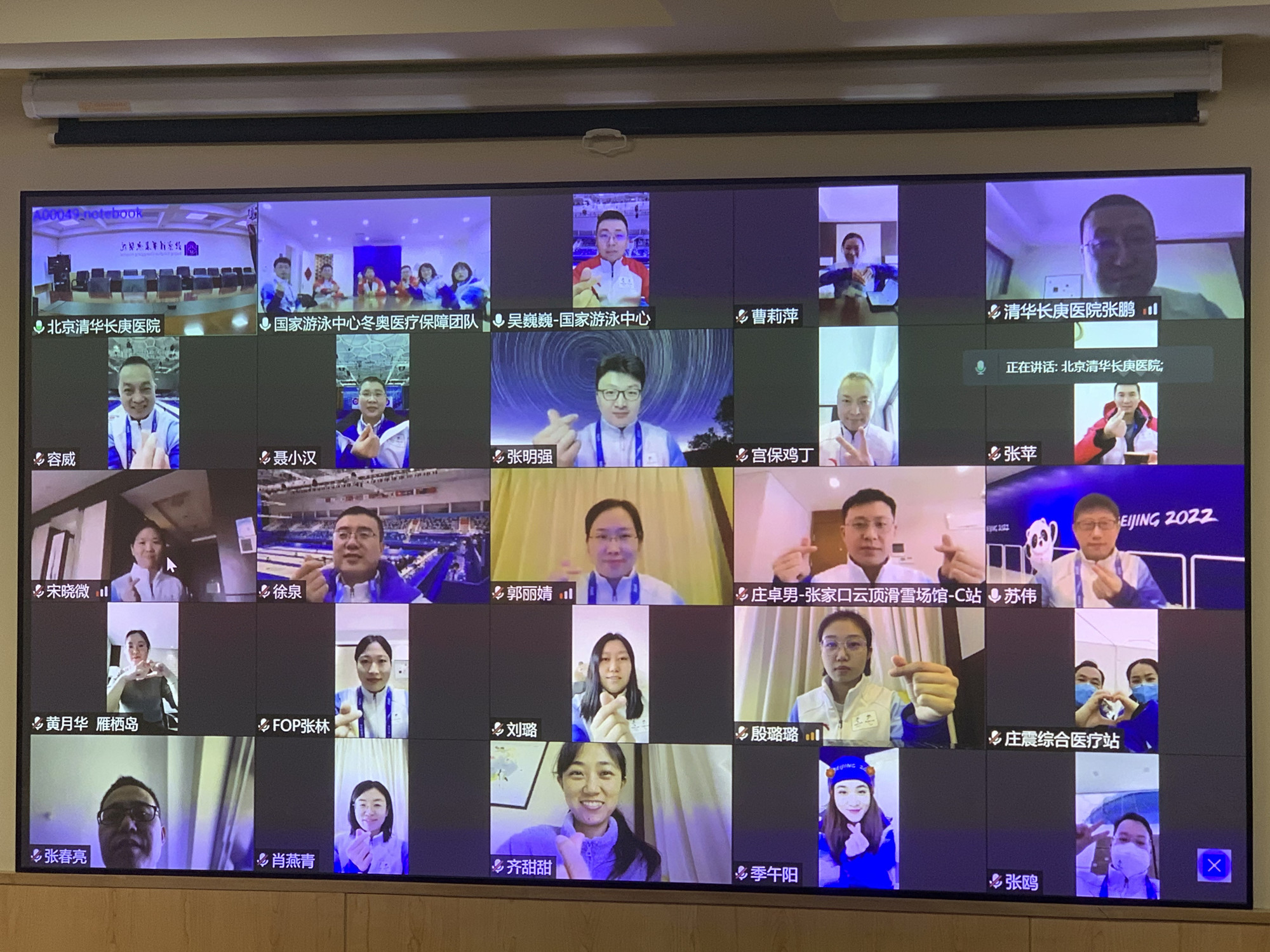 下午2点,周月红、董家鸿、张萍、郑卓肇,带领党院办、护理部、总务处负责人以及行政、护理总值班,通过互联网连线,向我院支援国家游泳中心、张家口云顶滑雪场、120急救、小汤山医院等地的医疗保障志愿者、外语志愿者、抗疫工作者等75名同仁“云拜年”,对大家舍小家顾大家表示衷心的感谢和诚挚的敬意。