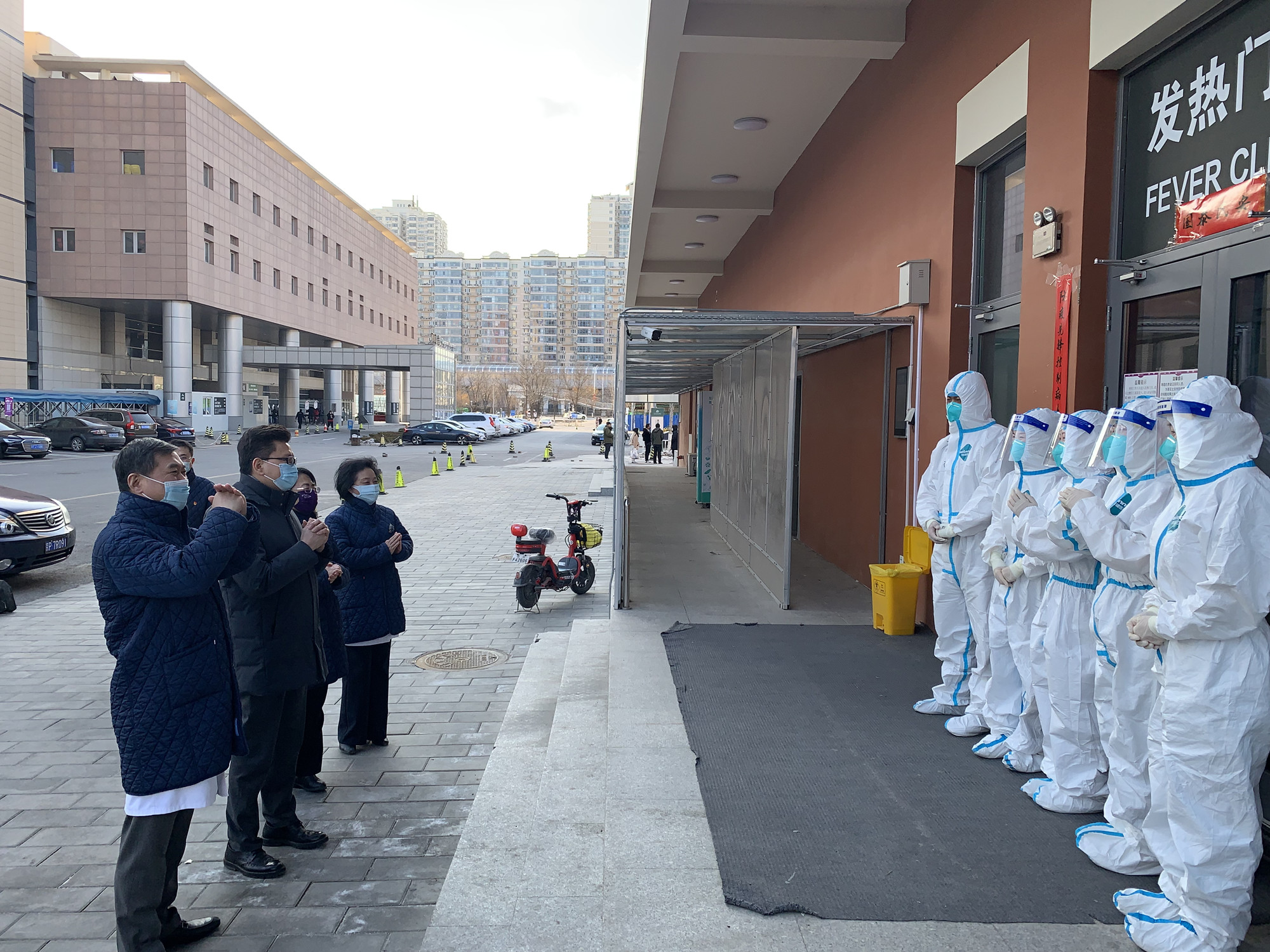 北京市医院管理中心副主任刘建民代表市医疗卫生健康系统莅临我院,同我院领导等,一起走进医院急诊、儿科门诊、UD药房、检验科、重症监护室、内外科病房、中控室、总机室等临床、后勤一线,为坚守岗位的同仁,以及在院患者送上节日问候和祝福。此外,刘建民、我院领导一行还特别前往发热门诊,以及我院于天通苑体育馆开设的新冠疫苗接种点,关心、致敬除夕仍在为抗疫一线做贡献的白衣战士们。