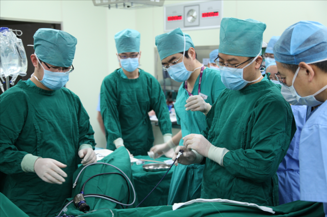 图为针状肾镜手术场景