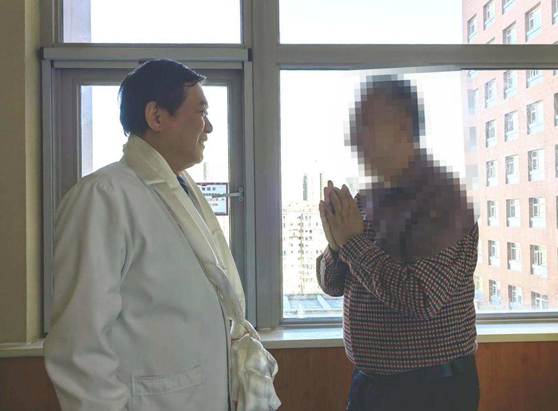 图为患者出院前对前来查房的董家鸿院士表示感谢