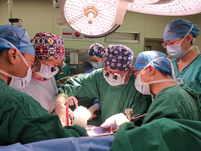 图为董家鸿(右三)团队开展肝移植手术场景