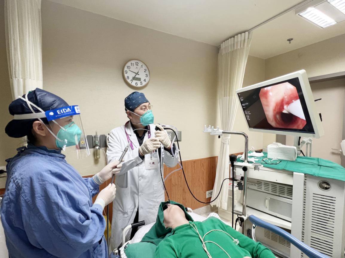 林明贵医师通过支气管镜介入冷冻治疗结核场景