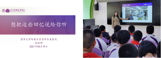首先,赵文静向同学们介绍了自2020年疫情开始以来,北京清华长庚医院从接诊第一例确诊病人,筹备临时隔离区,选派医护骨干支援武汉、北京佑安医院和小汤山医院,屡次外派人员支援核酸采集及当下的疫苗接种工作等。全院医务工作者都在齐心协力为抗疫的胜利而努力奋斗着。随后赵文静通过一部名为“庚子年战疫记”的宣传视频引入主题内容,很快吸引了学生的兴致和注意力。