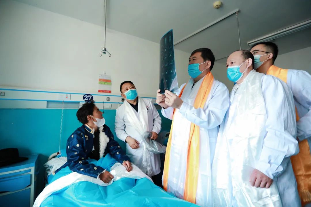家属排队为结束手术的董家鸿献上哈达(图片:人民日报健康客户端)