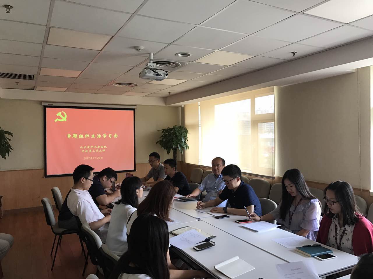 2017年7月26日下午,北京清华长庚医院行政第三党支部举行组织生活会,进行了支部委员的增选,并请支部沈立强书记讲党课。
