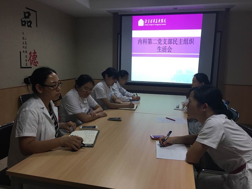 北京清华长庚医院8月11日电(通讯员 郭凯华)2017年7月24日中午,北京清华长庚医院内科第二党支部民主生活会在我院1号楼12B病房讨论室召开。此次会议主题紧紧围绕推进“两学一做”常态化学习、学习习近平总书记五四政法大学讲话、如何加强医院文化建设等议题展开,会议由党支部书记蒋静主持。