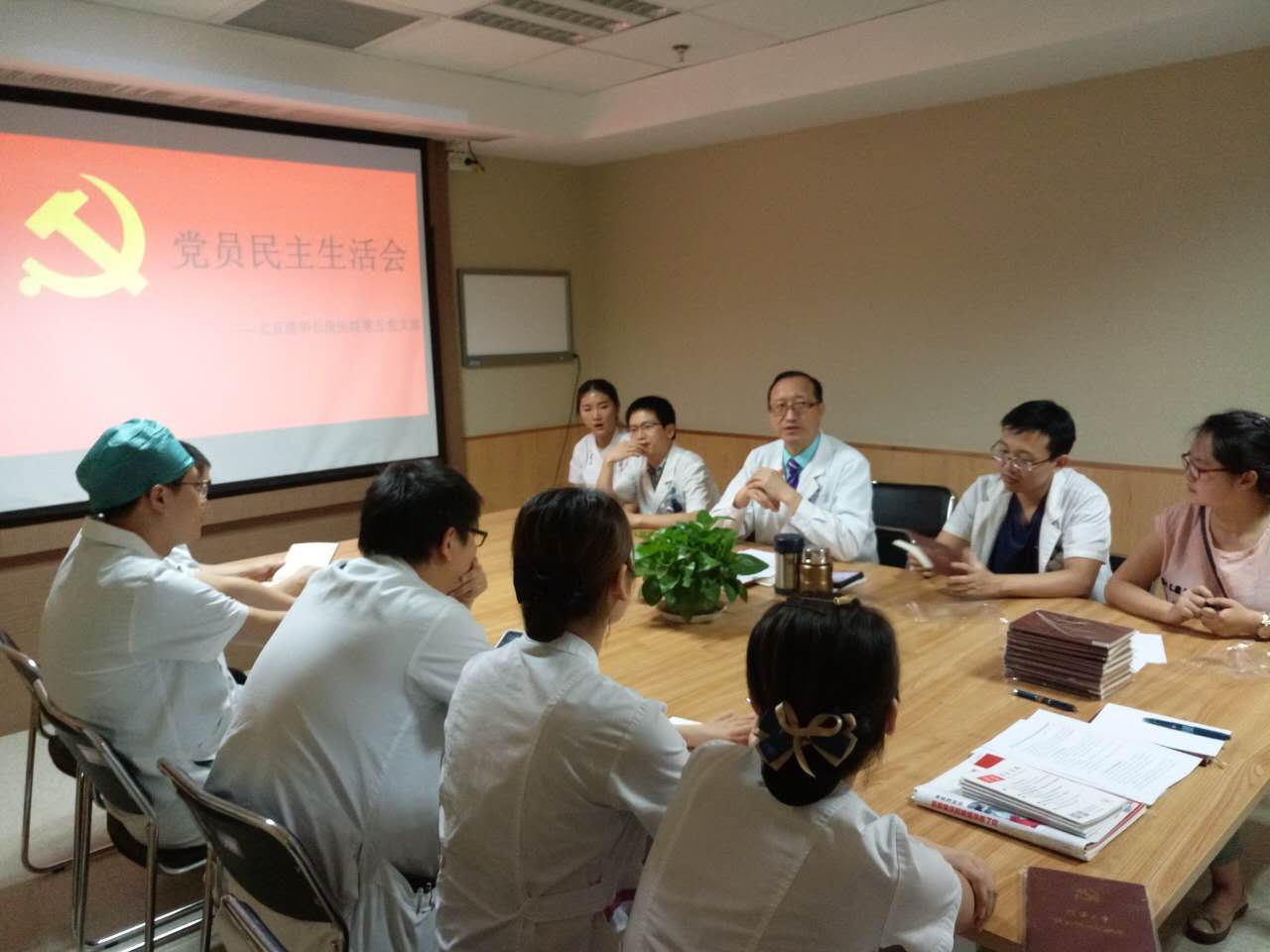 9月5日中午,北京清华长庚医院外科第一党党支部在5A病房讨论室召开组织生活会。本次会议为学习贯彻习近平总书记“7.26”重要讲话精神,全面迎接党的十九大召开。习总书记的讲话通篇闪耀着马克思主义思想光辉,具有很强的思想性、战略性、前瞻性、指导性,为开好党的十九大奠定了重要的政治基础、思想基础、理论基础。为认真学习贯彻这一重要讲话精神,党员们紧紧围绕党在新时期全面理论和实践的“一个鲜明主题”,新的历史起点上的“牢牢把握”,在理论上不断拓展新视野、做出新概括的“两个新”,推进中国特色社会主义新发展阶段上的“四个伟大”以及坚决打好决胜全面建成小康社会“三大攻坚战”的五个方面,重点学习,深入讨论。