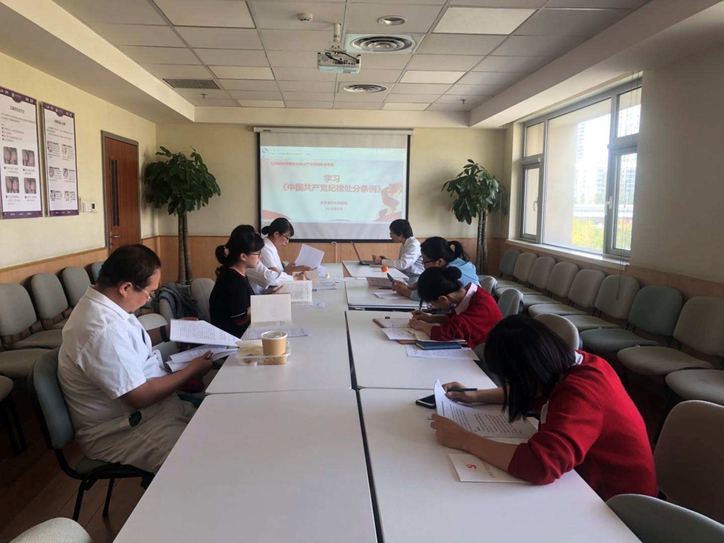 北京清华长庚医院妇儿第二党支部(曹肖漪、吕茵茵电)2018年9月25日下午,妇儿第二党支部召开以“守纪律、知敬畏、行模范”为主题的组织生活会,会议由支部书记吕茵茵主持召开,主要内容是学习《中国共产党纪律处分条例》(以下简称《条例》)、党的纪律建设的内涵和外延以及传达清华大学2018年秋季”两学一做”学习教育相关内容。
