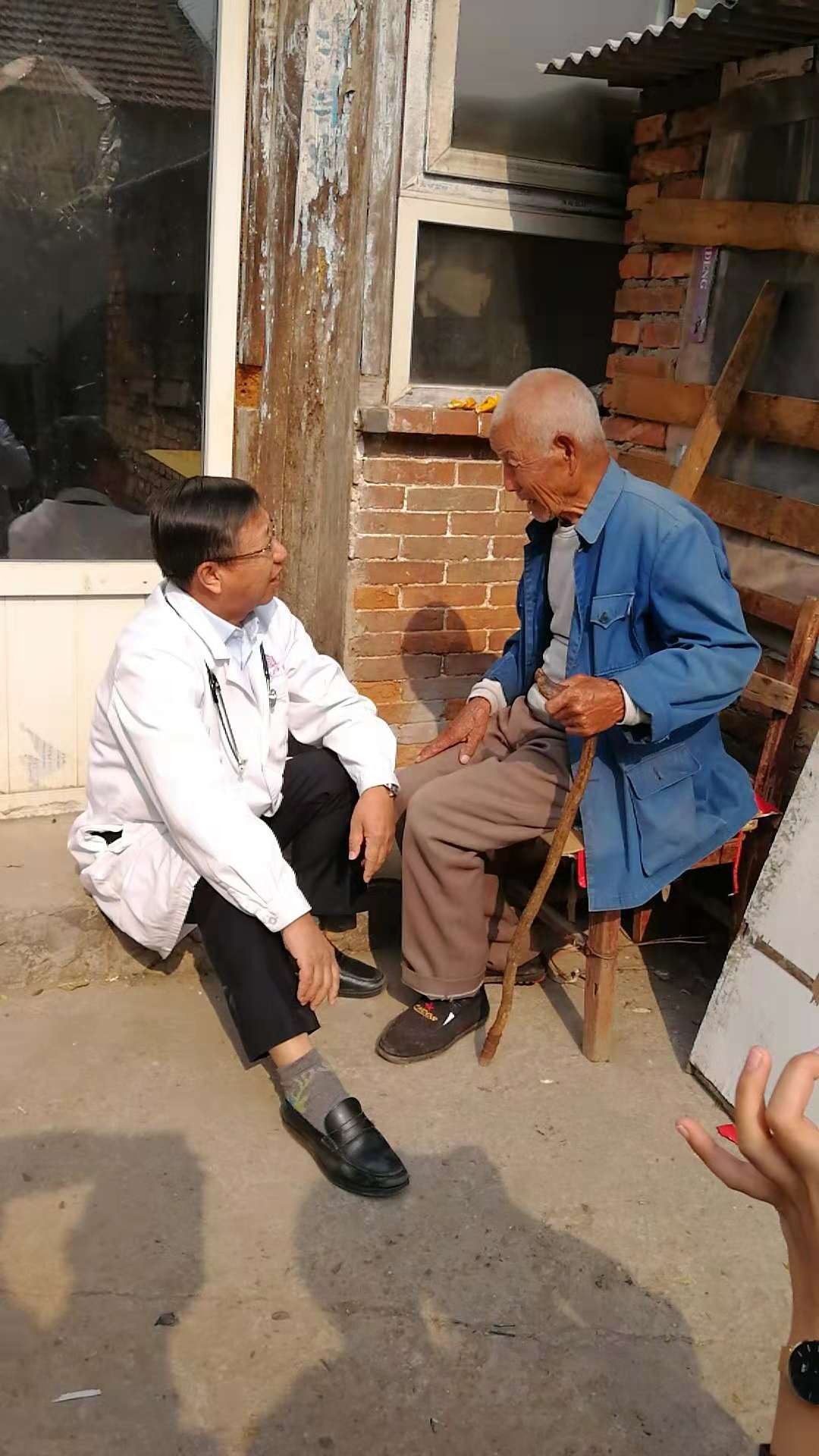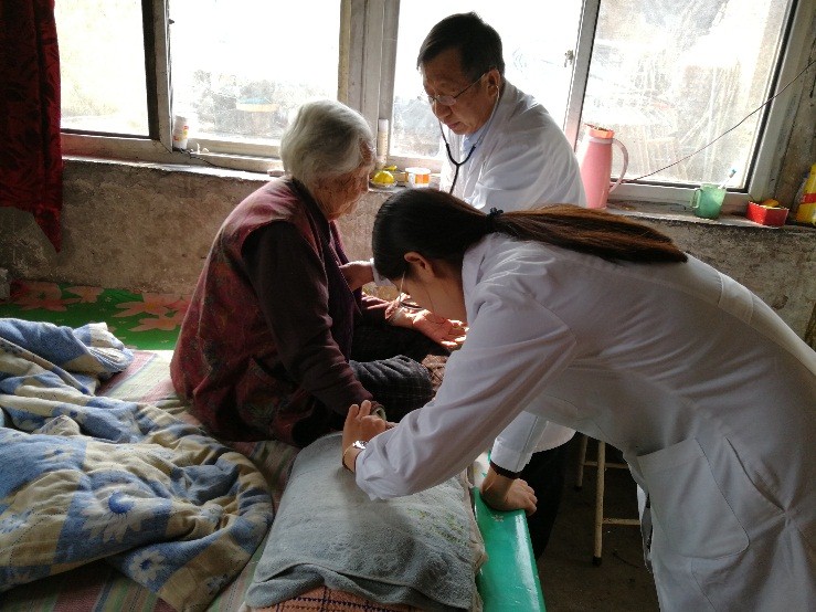 义诊过程中王仲书记从村干部处了解到还有一些老年人因不方便下地行走未能参加本次义诊,王仲书记立即带着医护人员拿着慰问品,测量仪器到老乡家中上门诊疗,旨在让老乡了解我支部此次活动的目的。