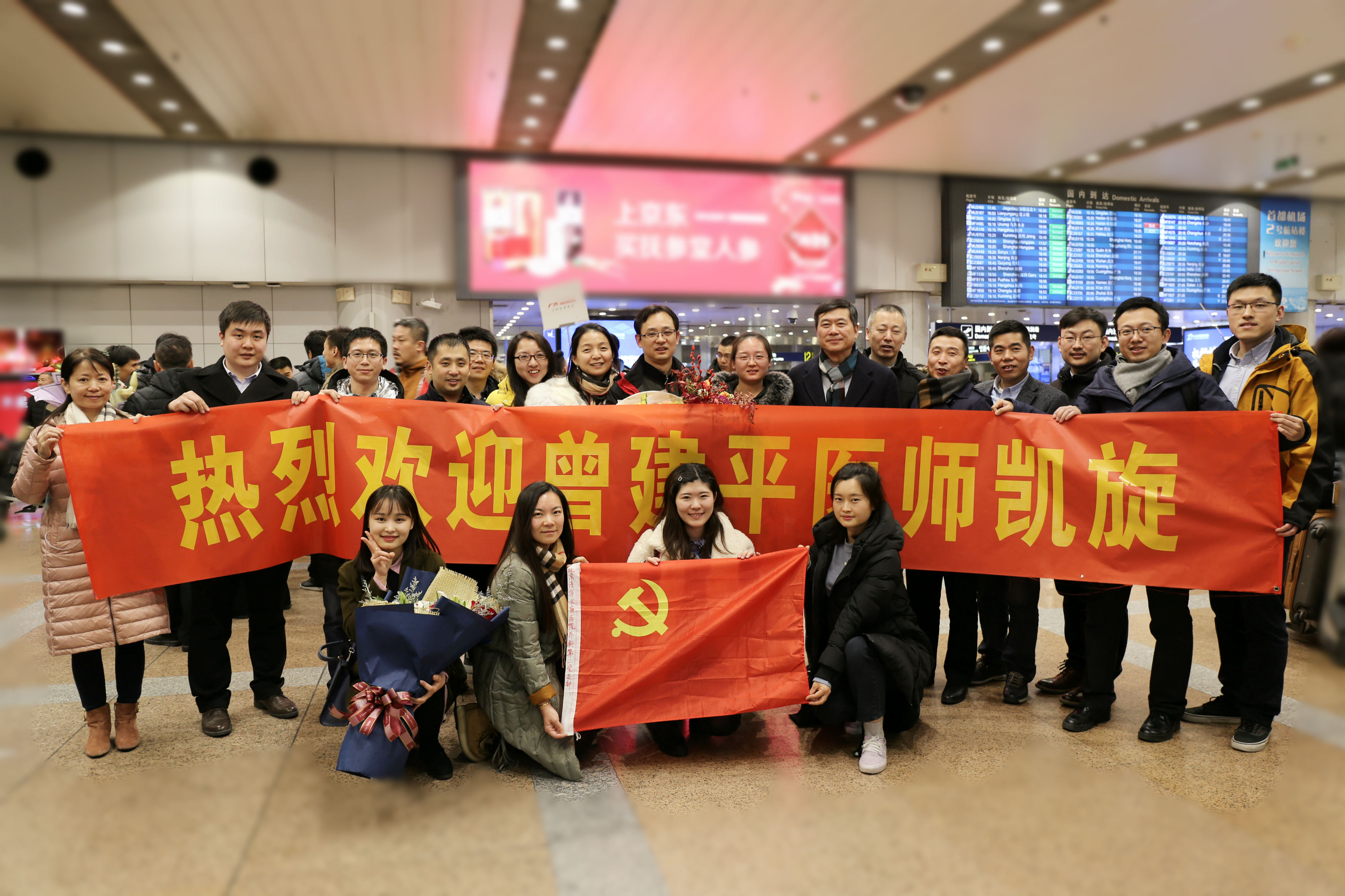 北京清华长庚医院1月15日电(通讯员 王思扬)1月14日晚,清华大学附属北京清华长庚医院肝胆胰中心曾建平医师圆满完成援疆任务返回北京,医院执行院长董家鸿、肝胆胰内科主任黄缘、肝胆胰外科执行主任卢倩、党办副主任高茹以及肝胆胰中心的同仁在机场迎接。