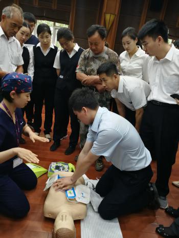 为增强单位公务人员的急救意识和社会责任,培养沉着冷静的应对能力,掌握快速有效的急救方法,进而提高所有公务人员的施救能力,某机关单位与急重症第一党支部取得联系,希望得到专业的急救培训。支部接到邀请后,立即组织党员及群众进行准备工作。本次培训的内容主要为:心肺复苏、AED(自动体外除颤仪)的使用和海姆利希手法急救。首先由支部的医生和护士为大家提供理论知识讲解,然后进行模拟演练,一对一的指导,理论与实践相结合,帮助大家更好的理解和掌握。