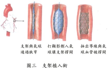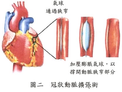 (一)经皮下导管冠状动脉扩张术(图二):可扩张冠状动脉血管病变狭窄处,以增进血流。