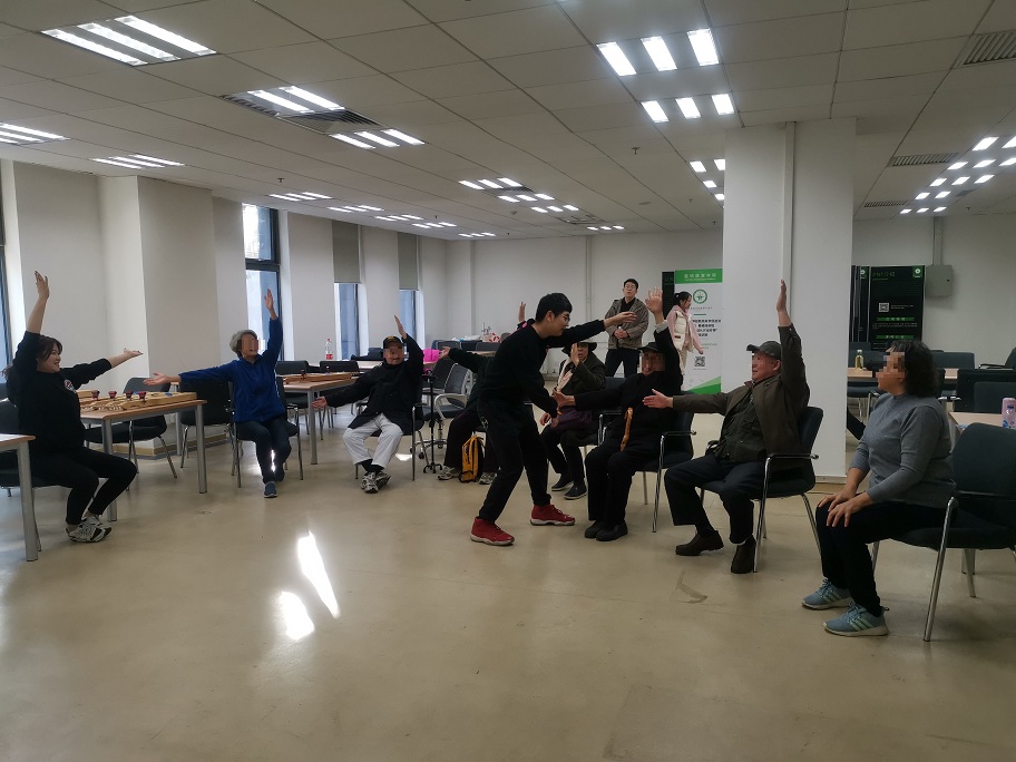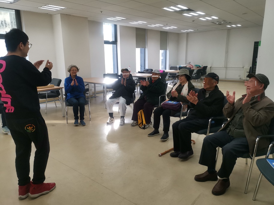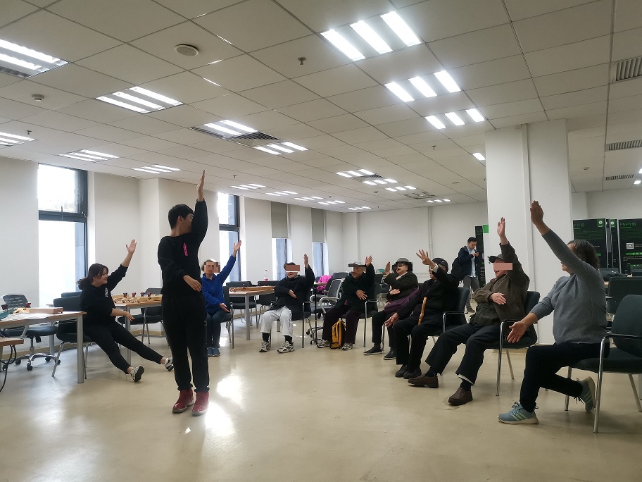随后,在社工的带领下,各位叔叔阿姨通过简易的Stroop色词测验和《大雨小雨拍拍手》进行认知小游戏,大家很快融入其中,现场欢笑声一片。