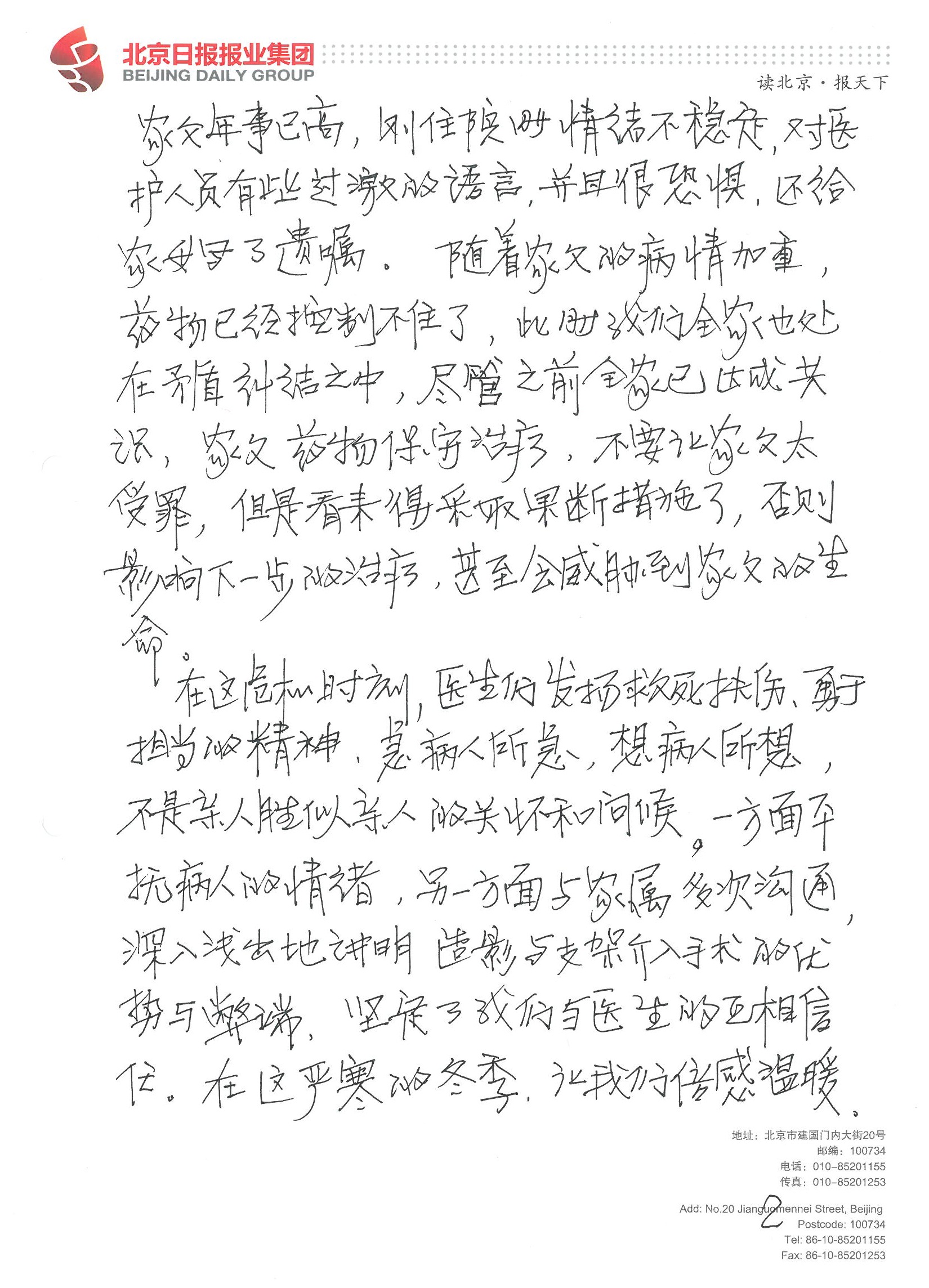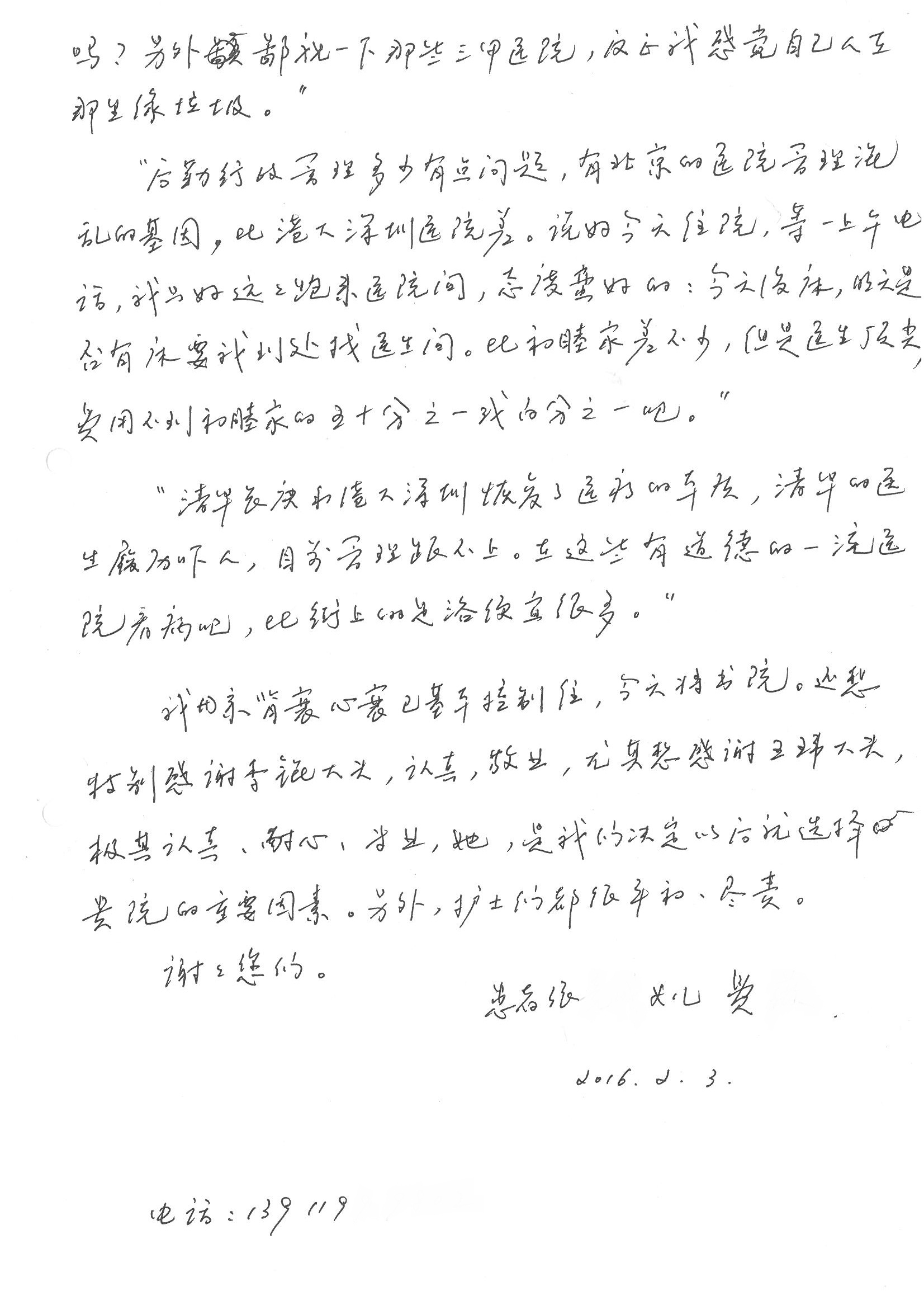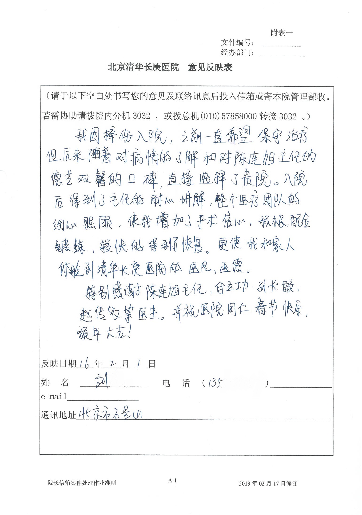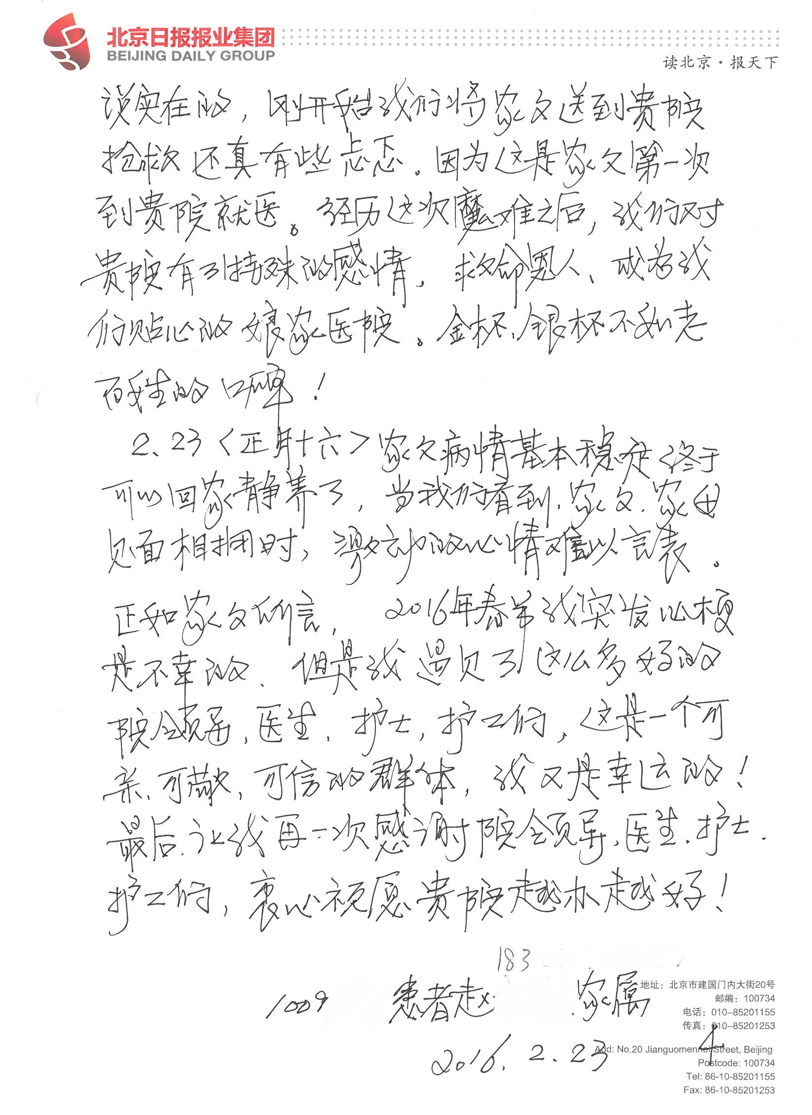 2016年2月,我院共接到患者及家属感谢信29封,其中骨科陈连旭副主任医师、宋飞主治医师、付立功医师、容威医师、孙长鲛医师、赵传多医师,神经外科王贵怀主任、郭毅副主任医师,整形外科张家宁部长,内脏内科张萍部长、缪国斌副主任医师、佘飞副主任医师、薛亚军主治医师、王昊天医师、湛琦医师、郭晓媚医师,肾脏内科李月红主任、庄震主治医师、王炜主治医师、吕佳璇医师、李锟医师,呼吸内科王立万主任、蔡存良主治医师、张晋则医师,消化内科任渝棠医师,妇产科黄振宇副主任医师、张蕾副主任医师、吕涛主治医师、王奔医师、尚梦远医师、文佳医师、陈锐医师,儿科晁爽主任、季丽娜副主任医师、李然主治医师,眼科胡运韬主任、耳鼻咽喉头颈外科叶京英主任,麻醉科俞晨副主任医师、刘芳主治医师,康复科孙小花技师,检验科彭鹏技士,工务仪器处李树勋,护理部肖江彬、李亚灵、郭莹莹、李维维、李骏、杨静、樊景春、黄帅、侯多朵、崇薇,天晟昱公司董师傅、王师傅及心脏内科、骨科、急诊科、耳鼻喉科、血管外科、呼吸科、CCU全体人员收到具名表扬。特此公告,以资鼓励!