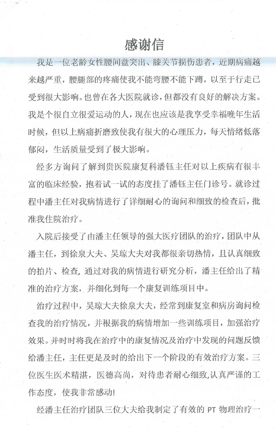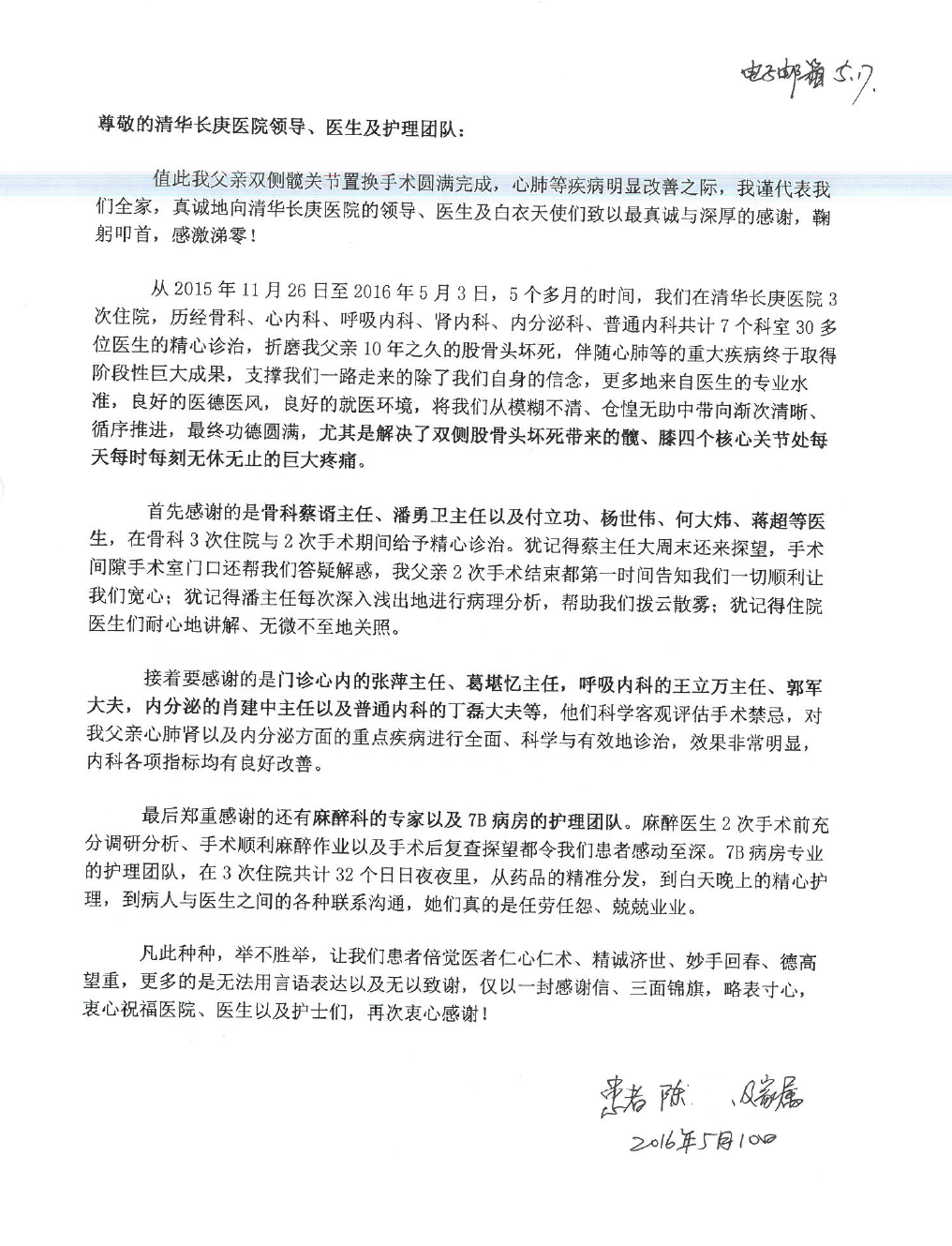 2016年5月,我院共接到患者及家属感谢信51封,其中肝胆胰外科董家鸿主任医师、石军副主任医师、王良医师、杨世伟医师,神经外科苏伟主治医师,普通外科罗斌主任医师、刘伯涛主治医师、刘安阳医师,整形外科张家宁主任医师、李薇薇副主任医师,骨科肖嵩华主任医师、潘勇卫主任医师、蔡谞主任医师、宋飞主治医师、何大炜医师、蒋超医师,泌尿外科李建兴主任医师、陈松副主任医师、张鑫副主任医师、胡卫国副主任医师、肖博主治医师、苏贵锋医师,麻醉科张欢主任医师,心脏内科张萍主任医师、缪国斌副主任医师、佘飞副主任医师、葛堪忆主任医师、何榕副主任医师、薛亚军主治医师、王昊天医师、杨靖医师、段敏医师、周杰医师、郭晓娟医师、郭文佳医师、陈瑞医师、葛婷婷医师,呼吸内科王立万副主任医师、郭军主治医师、张会娟医师、陈瑞医师,神经内科武剑主任医师,肾脏内科李月红主任医师、沈文光主任医师、庄震主治医师、李敏侠主治医师、吕佳璇医师,普通内科丁磊副主任医师,消化内科王佳主治医师,儿科李然主治医师、尹小梅主治医师,康复医学科潘钰主任医师、徐泉医师、孙小花、马春岳、李颜杝、尹航、朱殊丽、杨晓辉、马丽娜、付莉莉,内分泌科肖建中主任医师,眼科胡运韬主任医师、司山成医师、张茵茜医师,耳鼻咽喉-头颈外科李欣副主任医师,急诊科王也医师、李秀丽医师,ICU谢志毅副主任医师,超声科谢霞医师,药剂科凌桂红,医事处王莉,医政组赵晓兰,护理部史文丽、赵雪莲、黄帅、杨静、王珍、樊景春、张学爽、杨丽、王沫竹、林景熠、郑楠、刘晶钰、张保乾、李晶晶、寇静宜、张雅绯、于小梅、辛扬眉、吴琼、季静、代海栾、杨旭来、范桂芳、李亚灵、张慧文、郑爽、刘宇琛、曹奇菲、谢娟娟、谢兰兰、宋辉辉、郭莹莹、于洋洋、李伟伟、张亚菲、王莹、曹莉萍、曹艳飞、于小梅、蔡敏丽、贾波、吴雪洁、李梦雅、武军印、王英华、刘思彤、张莎、齐甜甜、钱月、位莎、张东敬、汪海燕、拓盼盼、刘翚、赵焕、张立玲、郭绥绥、陈红婷、白俊、李硕、张文文、杨新苗、何晓亮、巩丽阳、刘洋、李文静、杨晓辉以及普通外科、耳鼻喉科全体医护人员、8A病房全体医护人员、7B病房全体医护人员、6A病房全体护理人员收到具名表扬。特此公告,以资鼓励!