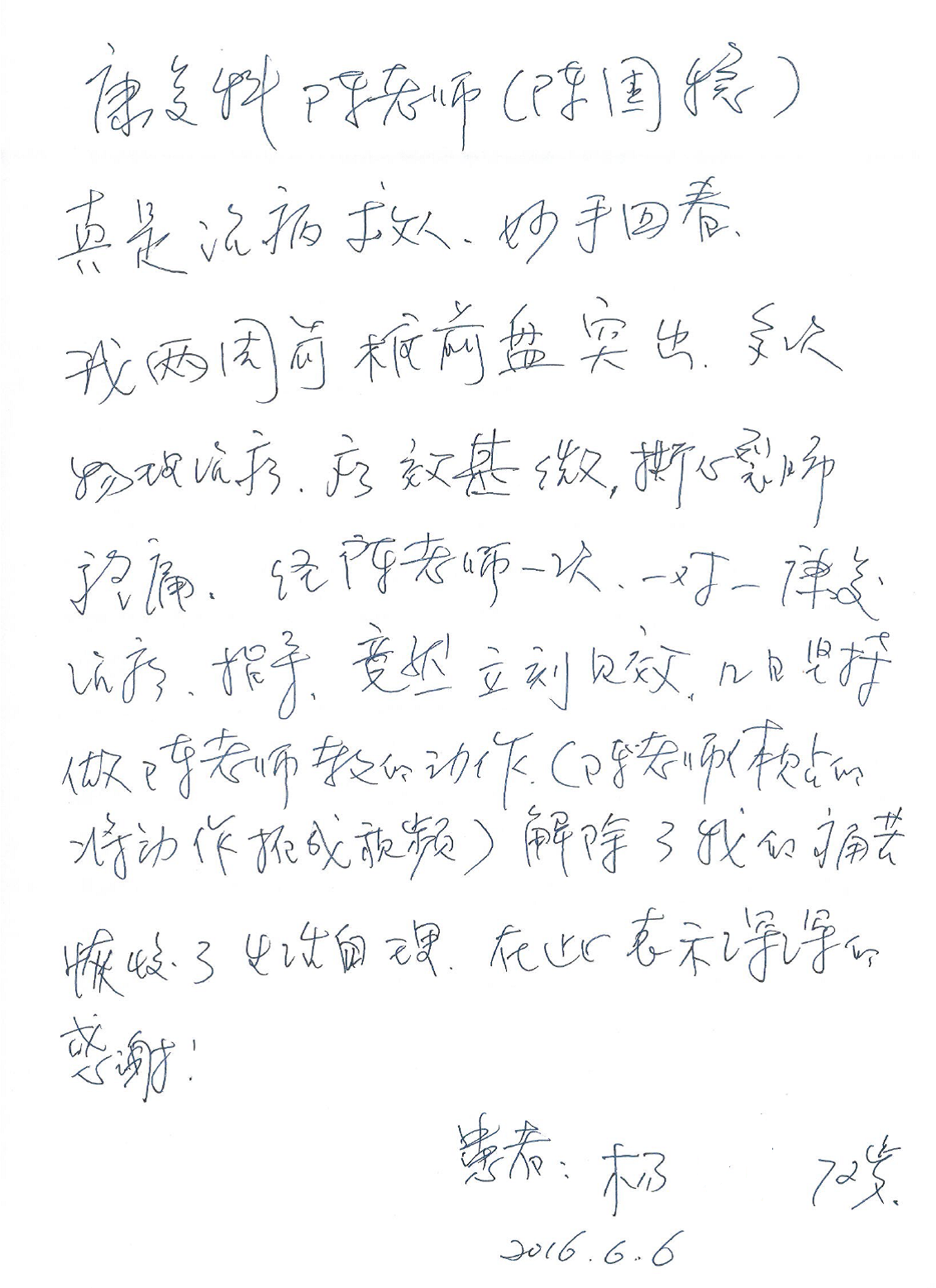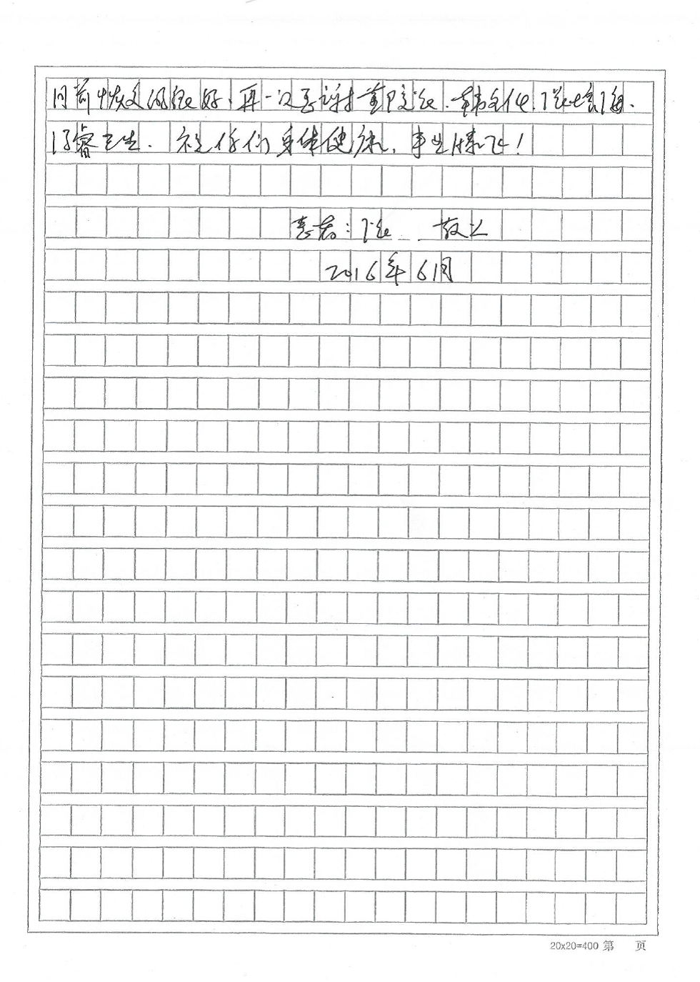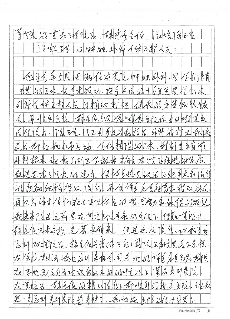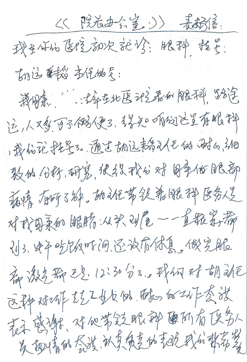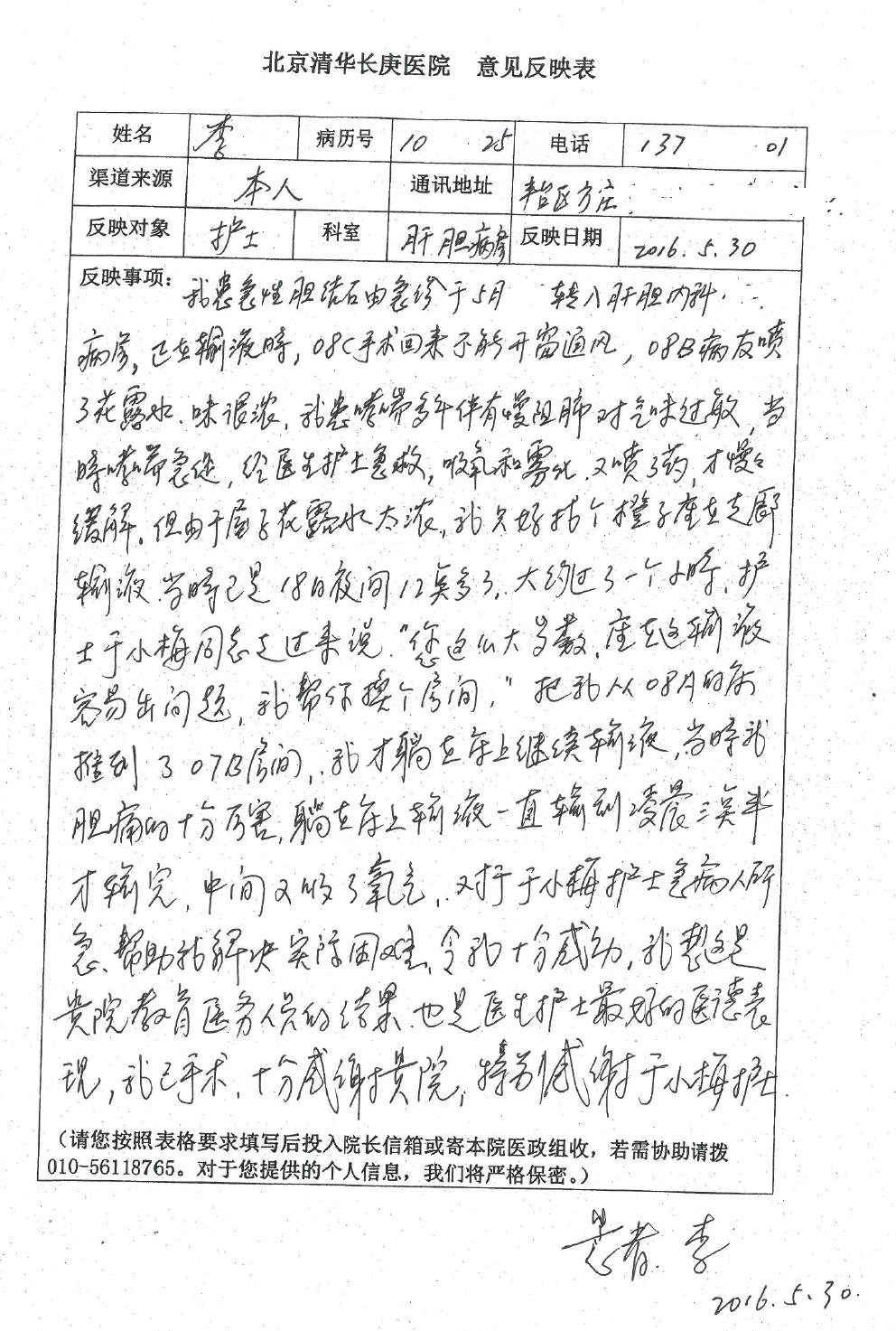 2016年6月,我院共接到患者及家属感谢信32封,其中肝胆胰外科董家鸿主任医师、韩东冬副主任医师、汤睿医师,神经外科张培海医师、刘东康医师,骨科潘勇卫主任医师、蔡谞主任医师、陈连旭副主任医师、邓玖征医师、容威医师、孙长鲛医师,血管外科吴巍巍副主任医师、曹战江医师,泌尿外科李建兴主任医师、张鑫副主任医师、黄鑫医师,心脏内科张萍主任医师、缪国斌副主任医师、佘飞副主任医师、何榕副主任医师、薛亚军主治医师、郭文佳医师,呼吸内科周杰医师,神经内科张菁副主任医师、杨亭亭医师、王也医师、李秀丽医师,血液及肿瘤内科李昕权主任医师、于凡主治医师,妇产科张蕾副主任医师、黄振宇副主任医师、吕涛主治医师、王奔医师、陈华云医师、刘俊医师、文佳医师,康复医学科潘钰主任医师、萧演清医师、徐泉医师、邹丽丽、陈固稳,口腔科聂小汉医师,眼科胡运韬主任医师,超声科张华斌主任医师,药剂科凌桂红、吴尚,护理部侯多朵、张丽娜、刘帅、徐宁、张萍、崔润喆、陈艳妮、张晓雨、张丽娜、李伟伟、季静、吴琼、黄婧倩、于小梅、宋辉辉、曹奇菲、郑爽、许平平、孙蕾蕾以及心内科、妇产科、泌尿外科全体医护人员,6B病区、7B病区全体护理人员,门诊药房全体工作人员,护工主管苏秀珍,食堂刘利荣收到具名表扬。特此公告,以资鼓励!