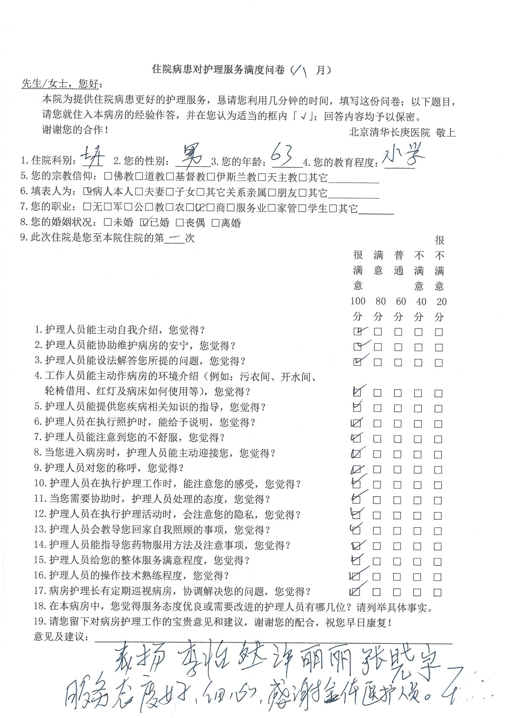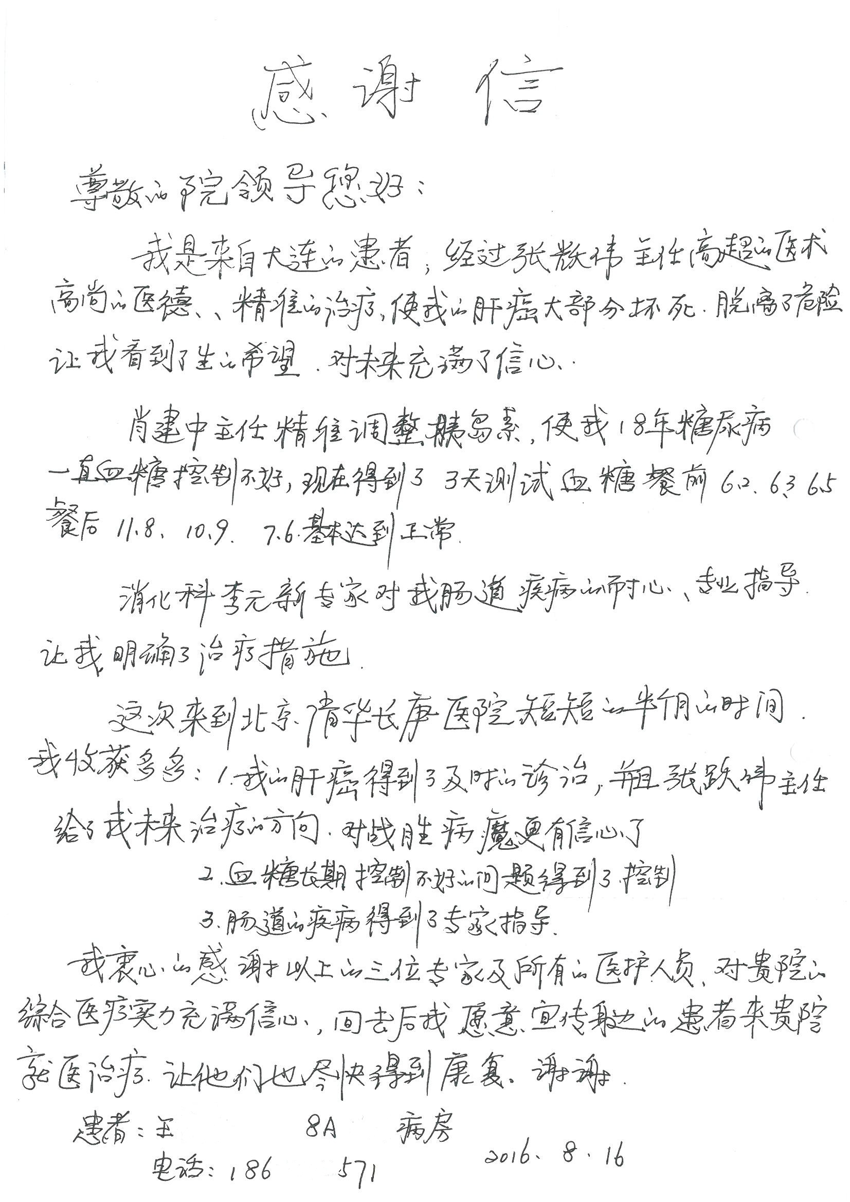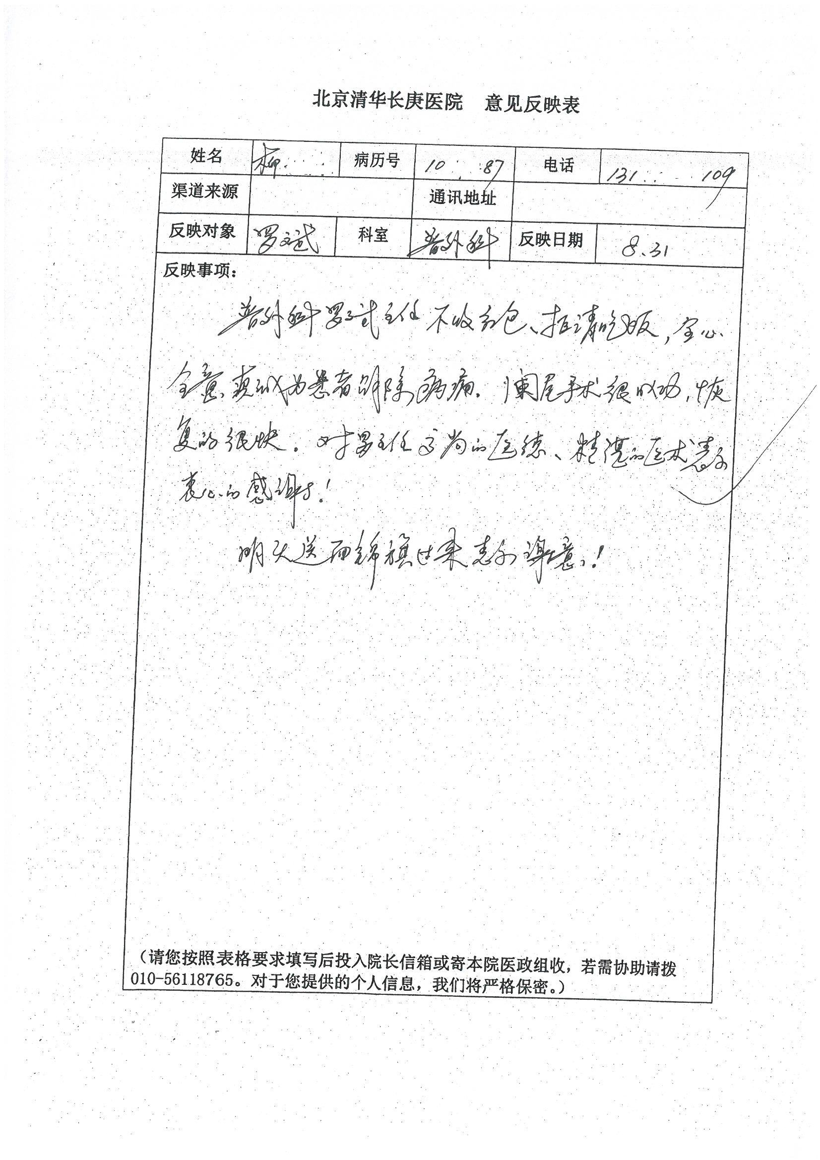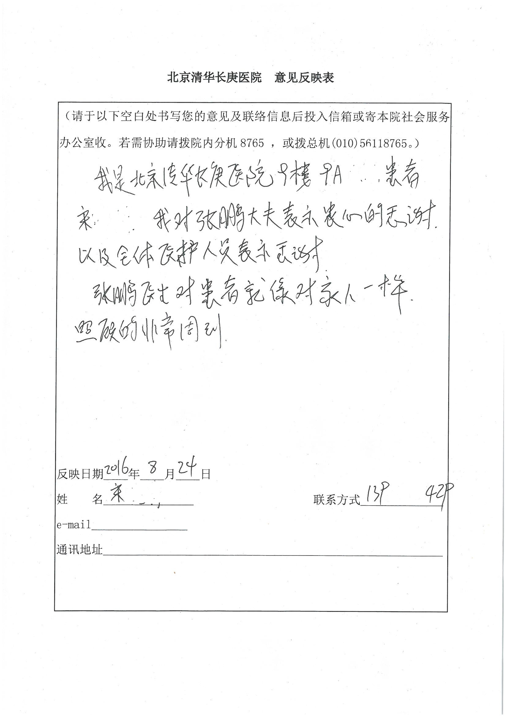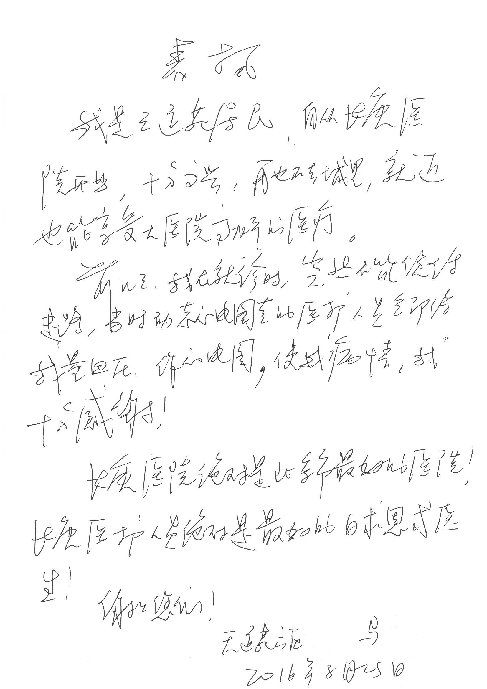 2016年8月,我院共接到患者及家属感谢信63封,其中肝胆外科董家鸿主任医师、张洪义主任医师、张跃伟主任医师、曾建平主治医师、王学栋医师、于里涵医师,神经外科王贵怀主任医师,普通外科罗斌主任医师、李元新主任医师、张鹏主治医师、刘安阳医师,骨科肖嵩华主任医师、潘勇卫主任医师、蔡谞主任医师、陈连旭副主任医师、宋飞主治医生、赵喆主治医师、朱剑津医师、邓玖征医师、付立功医师、孙长鲛医师、何大炜医师、徐凯医师、陈强医师、黄鑫医师,血管外科吴巍巍副主任医师、赵俊来医师、曹战江医师,心脏内科缪国斌主任医师、薛亚军主治医师,肾脏内科李月红主任医师、王炜主治医师、陈瑞医师,消化内科相马宁主任医师,血液内科李墨丹医师,儿科孟洪医师,康复科潘钰主任医师、萧演清医师、徐泉医师、阎澍妤医师、杨晓辉、马春岳、屠媛媛、邹丽丽、樊森朝、付莉莉、张丽春、尹航、陈固稳,内分泌科肖建中主任医师,皮肤科陈典医师,眼科胡运韬主任医师、刘瑄副主任医师、司山成医师、王奇骅医师、纪一聪,耳鼻喉科伊海金副主任医师、李欣副主任医师、许嘉医师,急诊科宋琳琳主治医师,医事处范丹梅,药剂科闫玉莹、杨学斌、李成玉、张心悦,护理部许洋洋、李梦雅、王梦瑶、李怡然、许丽丽、张晓宇、李亚灵、李冰、王秋惠、李双双、张传云、王慧颖、徐欣慧、徐宁、张苹、李彩云、辛扬眉、张慧文、郭婧倩、宋辉辉、季静、谢兰兰、曹奇菲、苑贵芳、杜双双、方玲、许平平、于洋洋、刘宇琛、郑爽、梁佳玉、陈莹、李硕、王梦瑶、于萍萍、苏贵云、杨旭东、辛扬眉、郑农、方玲、曹奇菲、带海栾、尹雪以及眼科、心脏内科、神经外科、动态心电图室、血管外科、耳鼻喉头颈外科全体医护人员,儿科全体护理人员,儿科收费处收到具名表扬。特此公告,以资鼓励!