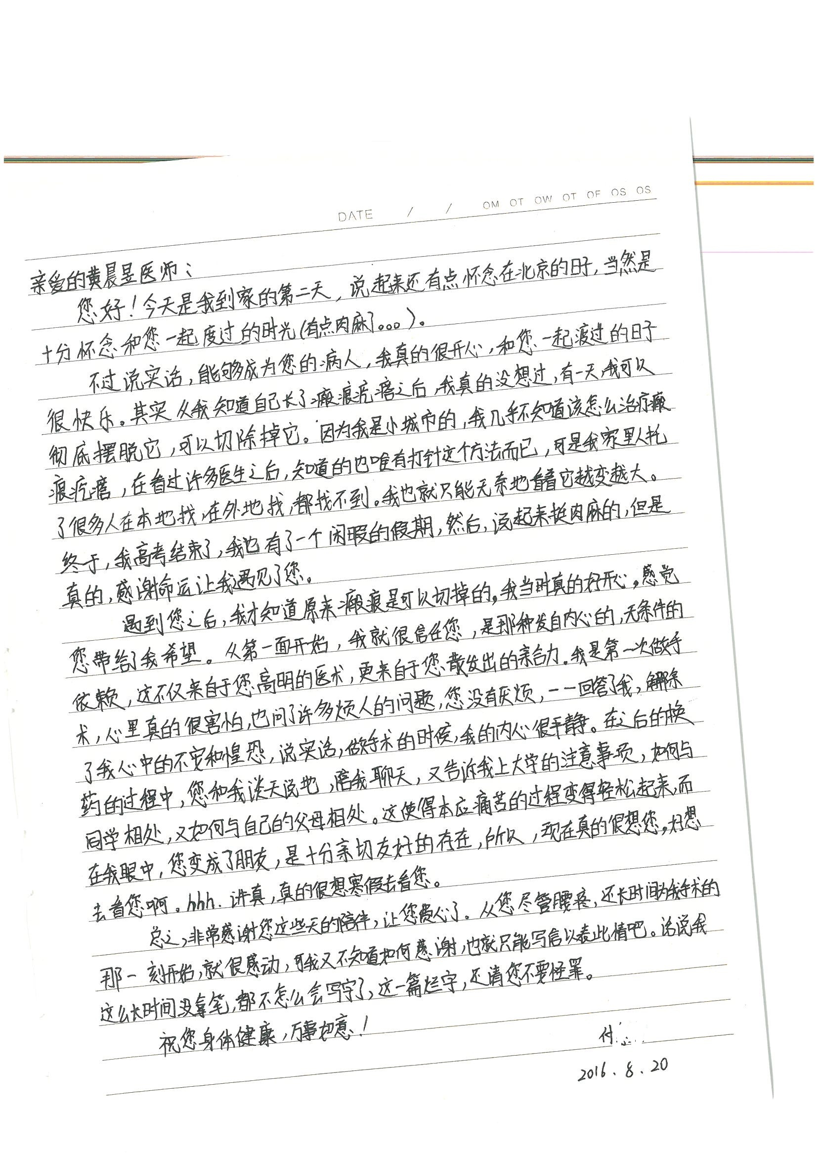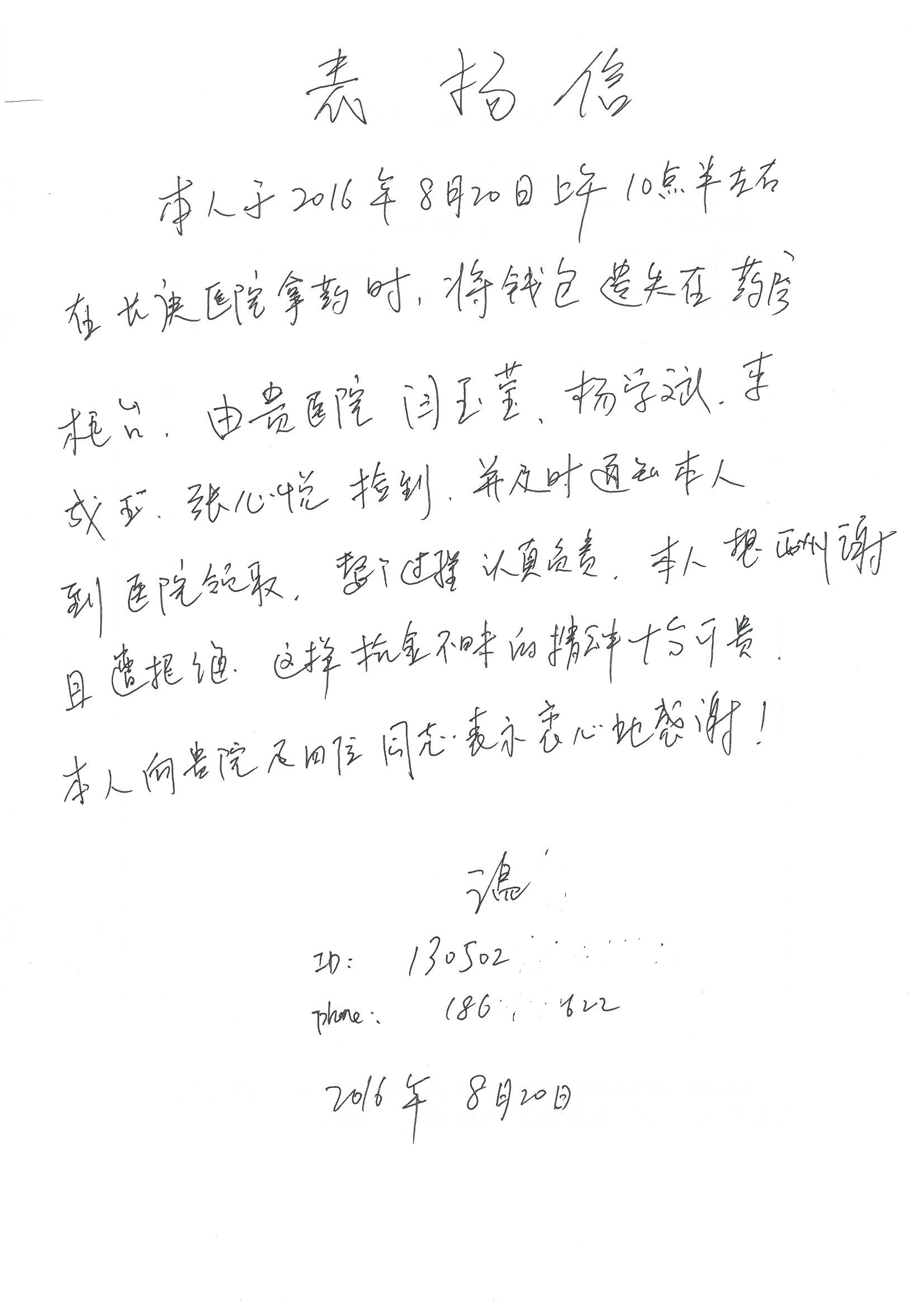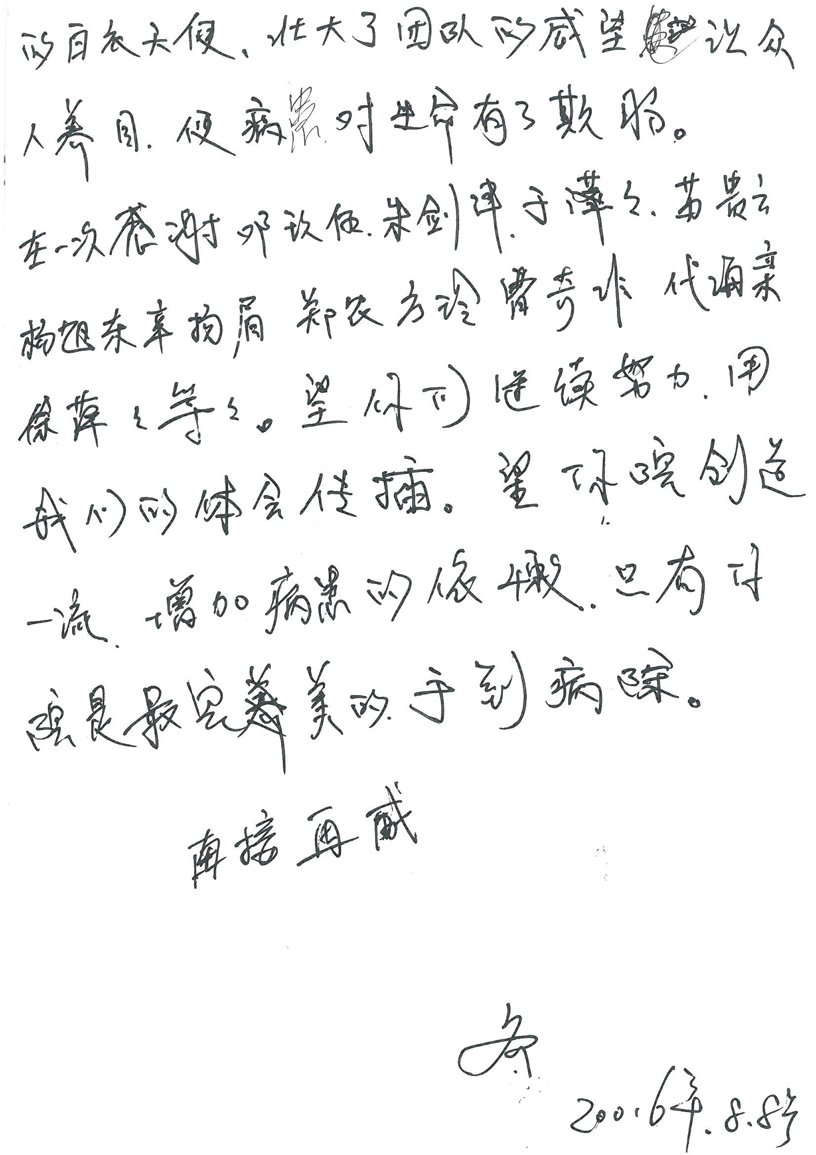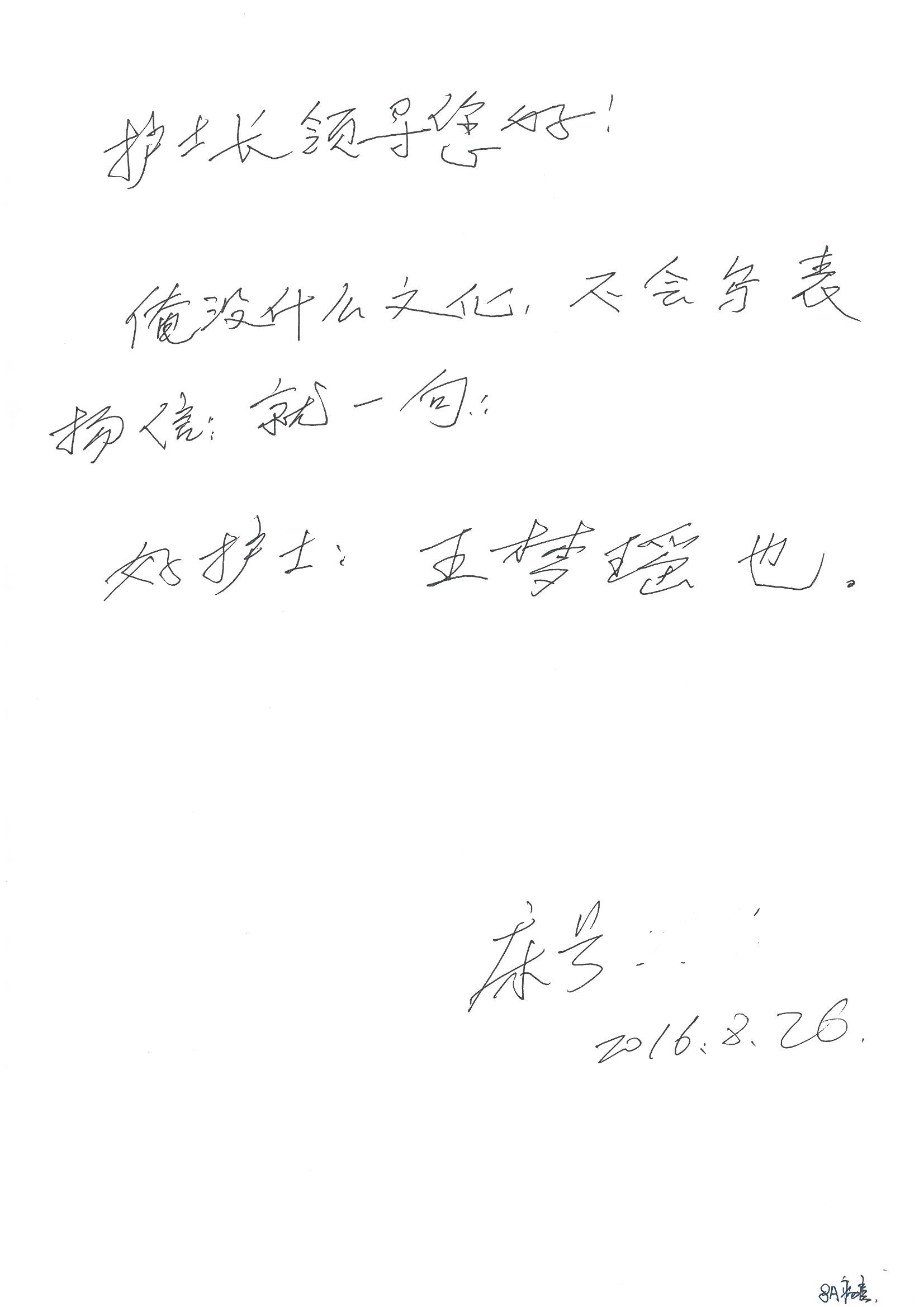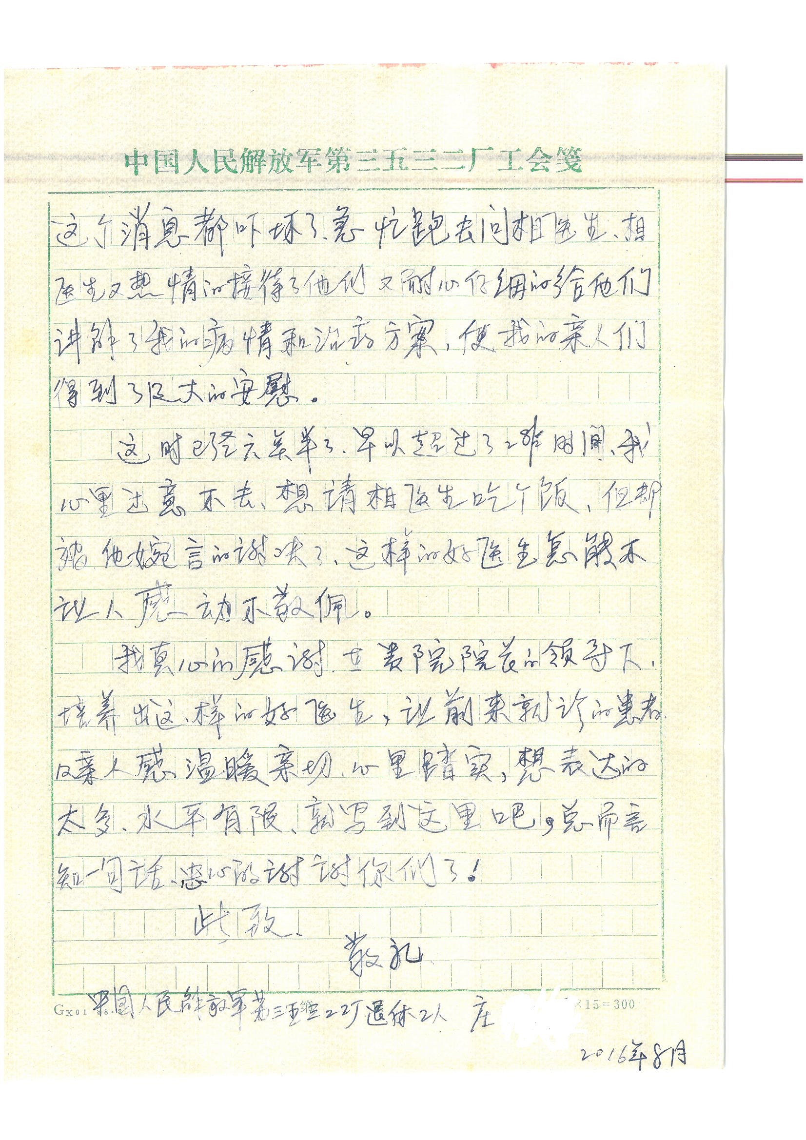 2016年8月,我院共接到患者及家属感谢信63封,其中肝胆外科董家鸿主任医师、张洪义主任医师、张跃伟主任医师、曾建平主治医师、王学栋医师、于里涵医师,神经外科王贵怀主任医师,普通外科罗斌主任医师、李元新主任医师、张鹏主治医师、刘安阳医师,骨科肖嵩华主任医师、潘勇卫主任医师、蔡谞主任医师、陈连旭副主任医师、宋飞主治医生、赵喆主治医师、朱剑津医师、邓玖征医师、付立功医师、孙长鲛医师、何大炜医师、徐凯医师、陈强医师、黄鑫医师,血管外科吴巍巍副主任医师、赵俊来医师、曹战江医师,心脏内科缪国斌主任医师、薛亚军主治医师,肾脏内科李月红主任医师、王炜主治医师、陈瑞医师,消化内科相马宁主任医师,血液内科李墨丹医师,儿科孟洪医师,康复科潘钰主任医师、萧演清医师、徐泉医师、阎澍妤医师、杨晓辉、马春岳、屠媛媛、邹丽丽、樊森朝、付莉莉、张丽春、尹航、陈固稳,内分泌科肖建中主任医师,皮肤科陈典医师,眼科胡运韬主任医师、刘瑄副主任医师、司山成医师、王奇骅医师、纪一聪,耳鼻喉科伊海金副主任医师、李欣副主任医师、许嘉医师,急诊科宋琳琳主治医师,医事处范丹梅,药剂科闫玉莹、杨学斌、李成玉、张心悦,护理部许洋洋、李梦雅、王梦瑶、李怡然、许丽丽、张晓宇、李亚灵、李冰、王秋惠、李双双、张传云、王慧颖、徐欣慧、徐宁、张苹、李彩云、辛扬眉、张慧文、郭婧倩、宋辉辉、季静、谢兰兰、曹奇菲、苑贵芳、杜双双、方玲、许平平、于洋洋、刘宇琛、郑爽、梁佳玉、陈莹、李硕、王梦瑶、于萍萍、苏贵云、杨旭东、辛扬眉、郑农、方玲、曹奇菲、带海栾、尹雪以及眼科、心脏内科、神经外科、动态心电图室、血管外科、耳鼻喉头颈外科全体医护人员,儿科全体护理人员,儿科收费处收到具名表扬。特此公告,以资鼓励!