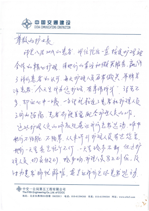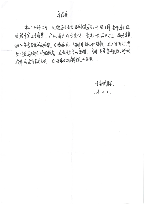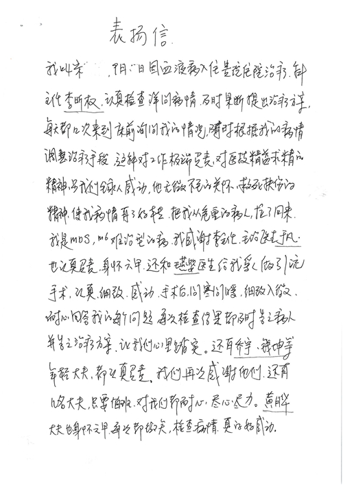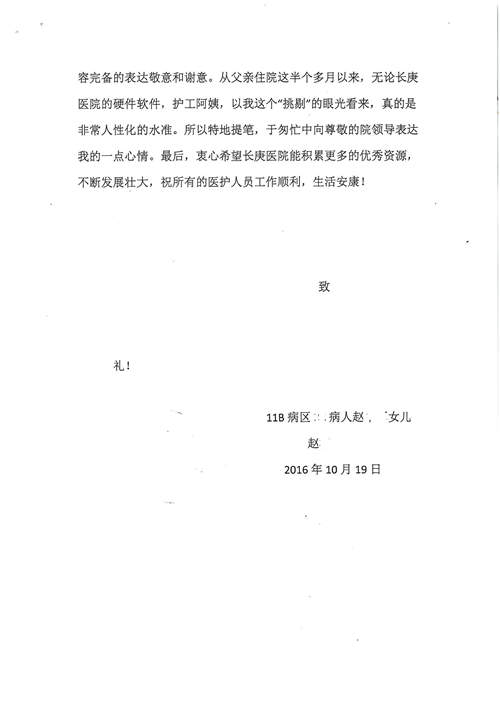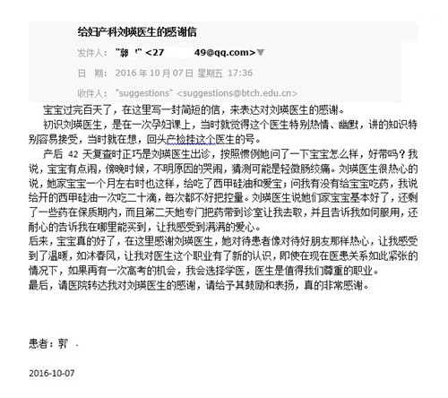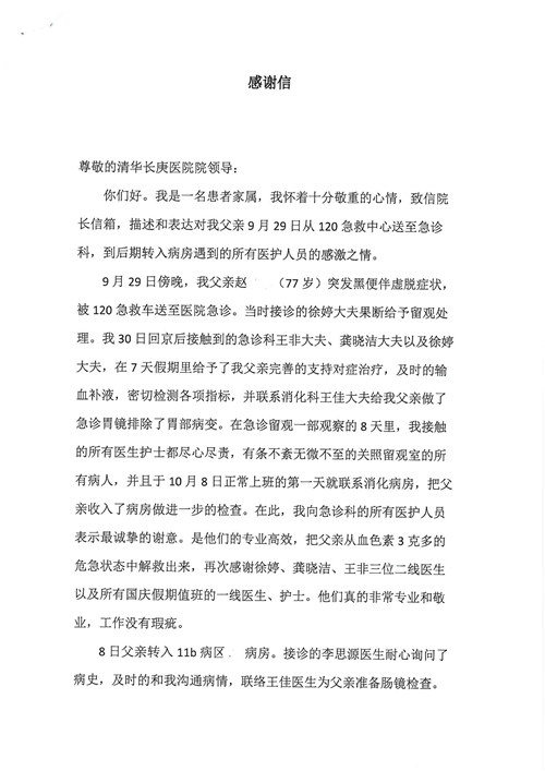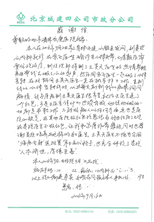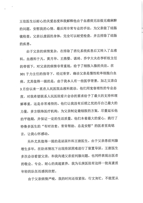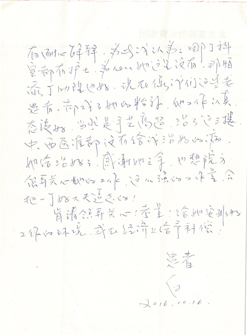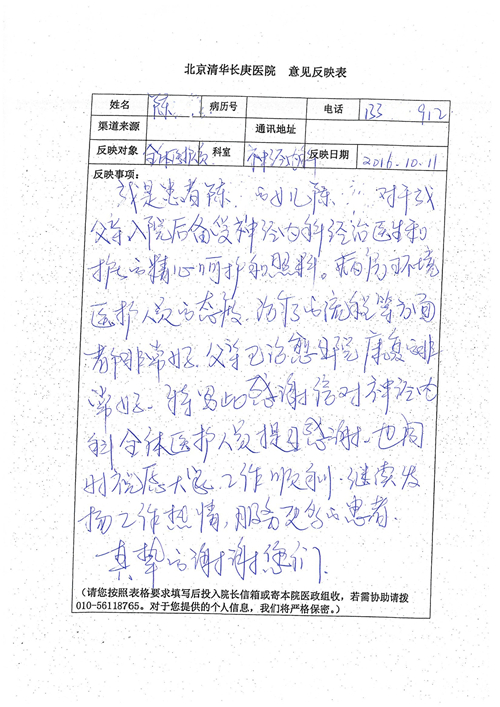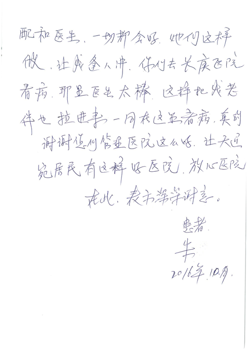 2016年10月,我院共接到患者及家属感谢信43封,其中肝胆外科韩东冬副主任医师、石军副主任医师、曾建平主治医师、公磊医师、袁玉娥医师,神经外科张培海医师,普通外科李元新主任医师、刘伯涛主治医师、汤洁莹医师、陈强医师、孙孝文医师、陈瑞医师,骨科陈连旭副主任医师,泌尿外科王澍医师,胸腔外科陈东红副主任医师、杨帆主治医师、朱伟鹏医师,心脏内科张金萍医师、王昊天医师、李雪,神经内科武剑主任医师、黄丽主治医师,肾脏内科庄震主治医师,消化内科聂飚副主任医师、刘佳文主治医师、王佳主治医师、李思源医师,血液内科李昕权主任医师、于凡主治医师、黄月华主治医师、王燕婴医师、乔宇医师、钱坤医师、谌琦医师,妇产科马珂主治医师、刘瑛医师,眼科胡运韬主任医师、司山成医师,中医科王颖莹,耳鼻咽喉-头颈外科叶京英主任医师、尹国平主治医师、胡斌医师,急诊科王非主治医师、龚晓杰主治医师、徐婷主治医师,医事处杨新蕊,护理部辛扬眉、许平平、代海栾、苑贵芳、谢娟娟、郑楠、李杰、张翠翠、刘晶钰、张莉璇、郑爽、张芳、马丽颖、程书琪、申姗、袁雪丽、孙璐、刘洛、李晶晶、贾晨、宋辉辉、荆红英、于小梅、高飞、杜双双、王子秋、刘灿、孟瑶、吴琼、李硕、张文文、李亚灵、刘宇琛、张惠文、郭莹莹以及蔺宏伟医师团队、李元新医师团队、郑楠护士团队、陈东红医师团队、叶京英医师团队,神经内科、妇产科、眼科全体医护人员,9A全体护士收到具名表扬。特此公告,以资鼓励!