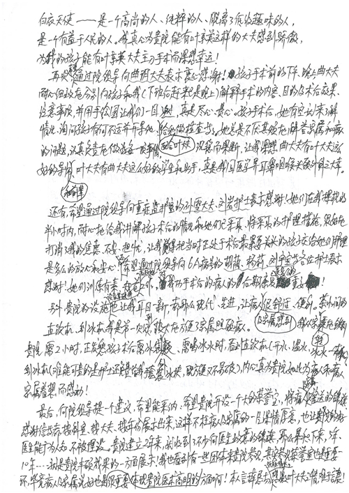 2016年11月,我院共接到患者及家属感谢信64封,其中肝胆外科董家鸿主任医师、张洪义主任医师、张跃伟主任医师、韩东冬副主任医师、曾建平主治医师、王良主治医师、庄卓男医师、朱融融医师,神经外科王贵怀主任医师、郭毅副主任医师、师炜医师,普通外科李元新主任医师、蔺宏伟副主任医师、刘伯涛主治医师、张鹏主治医师,骨科潘勇卫主任医师、蔡谞主任医师、赵喆主治医师、何大炜医师、朱剑津医师,泌尿外科陈松副主任医师,心脏外科沈冬焱副主任医师,麻醉科张欢主任医师、高元朝主治医师,心脏内科缪国斌主任医师、佘飞副主任医师、刘芳副主任医师、薛亚军主治医师、丁洁医师、葛婷婷进修生,神经内科王也医师、黄镪进修生,肾脏内科王炜主治医师,消化内科姜泊主任医师、任渝棠主治医师、王佳主治医师、李思源进修生,血液及肿瘤内科于凡主治医师、李墨丹医师,妇产科黄振宇副主任医师、马珂主治医师、杨曦主治医师、王奔医师、刘瑛医师、陈华云医师、王晓茜医师,儿科季丽娜副主任医师、尹小梅主治医师、李然主治医师,康复科潘钰主任医师、徐泉主治医师、孙小花、杨晓辉、马春岳,皮肤科赵邑副主任医师、段晓涵主治医师,眼科胡运韬主任医师、郭立斌副主任医师,耳鼻咽喉头颈外科叶京英主任医师、李欣副主任医师、尹国平主治医师、曲玥医师、许嘉医师,ICU孙雪医师,放射科马永强主治医师,放疗科蒋静主治医师,检验科樊淼,临床药学科席庆、张微微,医事科李俊男、张勇涛,警卫科姚旭,保洁员汪志霞、王志梅,护理部白俊、王璐、王梦瑶、宋辉辉、蔡敏丽、高飞、刘紫霞、王紫秋、贾晨、刘灿、孙璐、刘璐、于晓梅、曹莉萍、周小懿、杨敏、申姗、李晶晶、李伟伟、荆红英、张保乾、张雅绯、吴雪洁、曹艳飞、刘岩、胡荫、杨莉、刘宇宝、黄映琼、周倩倩、朱杰、崔润喆、韩建新、梁淑一、魏月秀、李伟伟、周圆、刘金霞、田迎迎、李亚灵、谢兰兰、赵宝晶、曹奇菲、张慧文、王许佳以及廖秦平医护团队、蔡谞医护团队、张传云护士团队、郑楠护士团队,血液及肿瘤内科、心脏外科、消化内科、普通外科、神经外科、泌尿外科、放射科全体医护人员收到具名表扬。特此公告,以资鼓励!