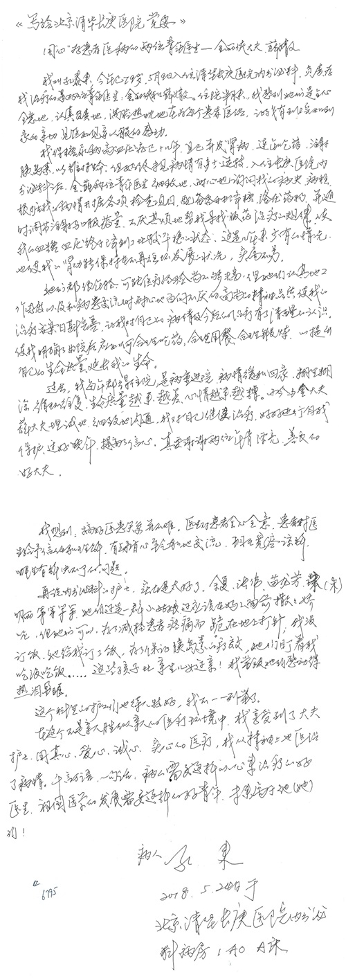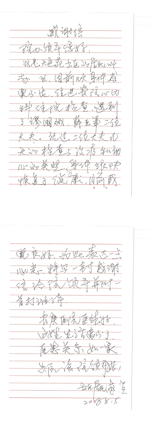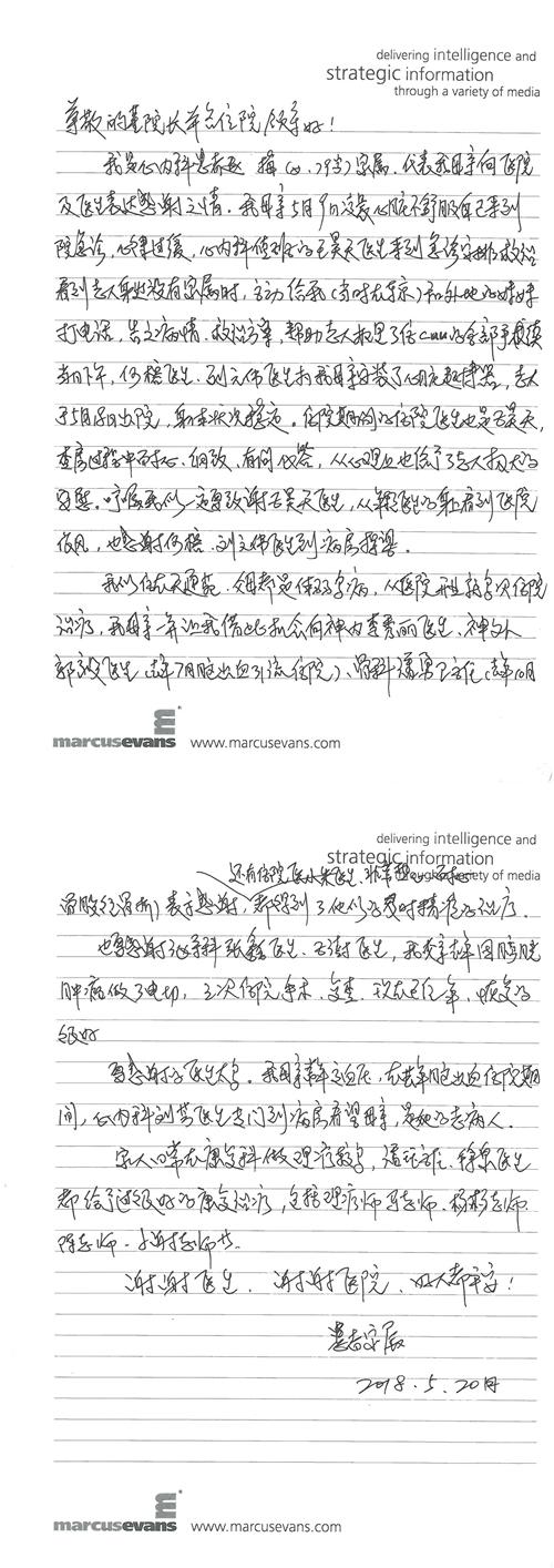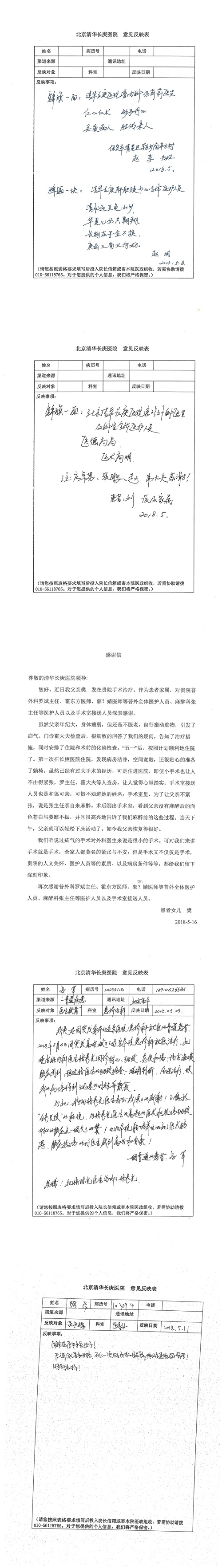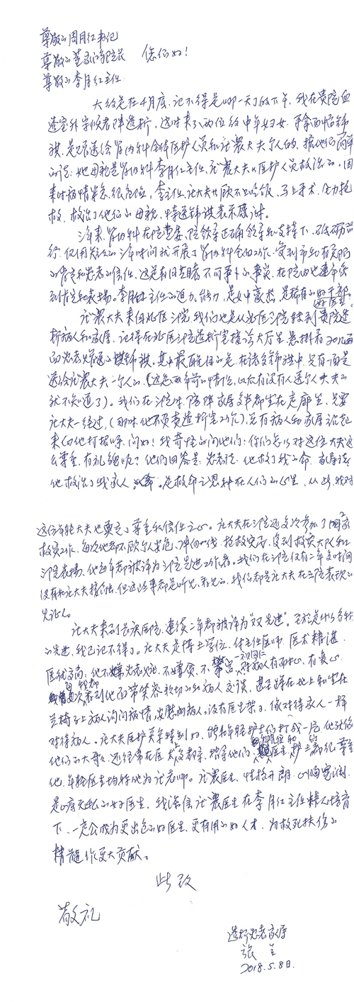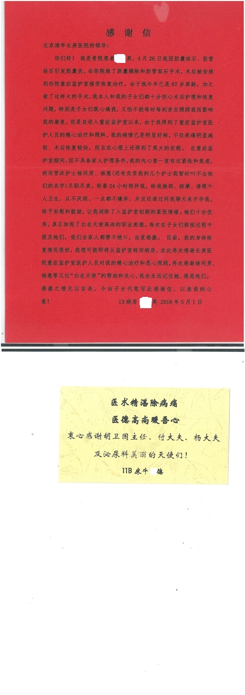 2018年5月,我院共接到患者及家属感谢信62封,其中心脏内科缪国斌主任医师、张萍主任医师、李艳芳主任医师、何榕副主任医师、薛亚军主治医师、王睿医师,骨科陈连旭主任医师、肖嵩华主任医师、宋飞副主任医师、邓玖征医师、于里涵医师,胃肠外科王峰副主任医师、张骞主治医师,康复医学科徐泉主治医师、马丽娜医师、谢树医师、马迪医师,妇产科黄振宇主任医师、张蕾副主任医师、马珂副主任医师,心脏外科沈冬焱副主任医师、李永超医师,皮肤科蒋源副主任医师,肝胆胰中心董家鸿主任医师、韩东冬副主任医师、汤睿主治医师、王学栋主治医师、李昂医师、张新静医师,肝胆内科黄缘主任医师,消化内科王瑞刚医师,眼科胡运韬主任医师,呼吸内科郭军副主任医师,肾脏内科李月红主任医师、庄震副主任医师,泌尿外科胡卫国副主任医师、陈松副主任医师,神经内科张小峰主治医师,普通外科罗斌主任、霍东方主治医师、郭丽婧主治医师,急诊科张鹏主治医师、张陈光医师、庄卓男医师、赵宏伟医师,医事处冯小雨,神经外科吕宪利副主任医师,内分泌与代谢科金丽霞主治医师、薛靖文医师,普内科冯莉莉主治医师,放射治疗科蒋静副主任医师,中医科秦建婷医师,护理部余夏、张伟、苗龙芳、朱明丽、杨阳、杨同男、杨蕙,护理员熊桂霞、刘桂侠,总务处保洁员杨玉芳,收到具名表扬。特此公告,以资鼓励!