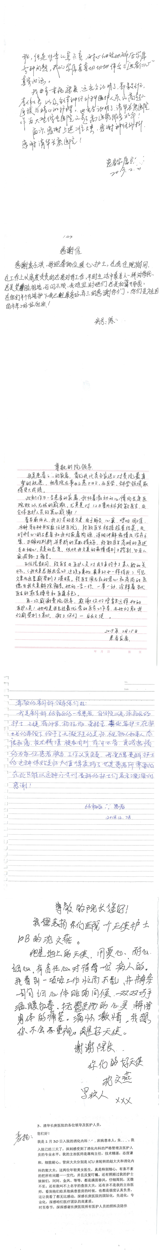 2019年2月,我院共接到患者及家属感谢信59封,其中肝胆胰外科董家鸿主任医师、项灿宏主任医师、石军副主任医师、王良主治医师、陈鹿嘉医师,神经外科郭毅副主任医师、李伟医师,普通外科罗斌主任医师、刘安阳医师、田金翌医师、胡娟医师,胃肠外科李元新主任医师、王峰副主任医师、蔺宏伟副主任医师、刘伯涛主治医师、张骞主治医师、孙孝文主治医师、庄卓男医师,泌尿外科王强副主任医师,心脏外科沈冬焱副主任医师,心脏内科刘芳主任医师、何榕副主任医师,呼吸与危重症医学科牟向东主任医师、郭军副主任医师、赵景全主治医师、张明强医师,神经内科付伟副主任医师、谢珊医师、袁亦方医师,普通内科段敏医师,消化内科蒋绚主任医师、任渝棠主治医师、易婷医师,妇产科廖秦平主任医师、张蕾副主任医师、吕涛副主任医师,康复科潘钰主任医师、徐泉主治医师、孙小花、严红松、蔡小娥、马丽娜,中医科刘承主治医师、李小玲主治医师,耳鼻咽喉头颈外科秦贺副主任医师,医事处侯春悦、谢晶文,总务处杨菲,配送员王金霞,护理部袁娜、张赫、程书祺、姚惠云、翟扬扬、张芳、李丹、胡亚彤、郝津荣、杨敏、杜红愚、方玲、张荣华、于静、王钰宁、张翠翠、周小懿、张璐、郑爽、袁子琪、杨迎春、张雅芝、李娜、沈文燕、王嘉琦、荆红英、秦蒙蒙、肖鑫、覃丽妮、王婕、蒋帅男、杨钰琢、荣程莹、李俊、戴秋菊、范宇丹、胡荫、曹艳飞、刘璐、刘盼以及急诊科、泌尿外科、NICU、门诊药房全体医护人员收到具名表扬。特此公告,以资鼓励!