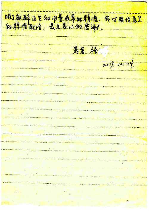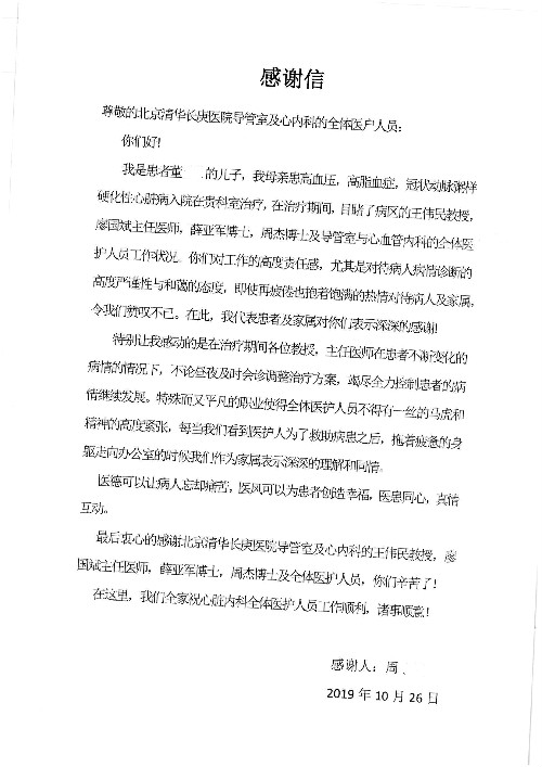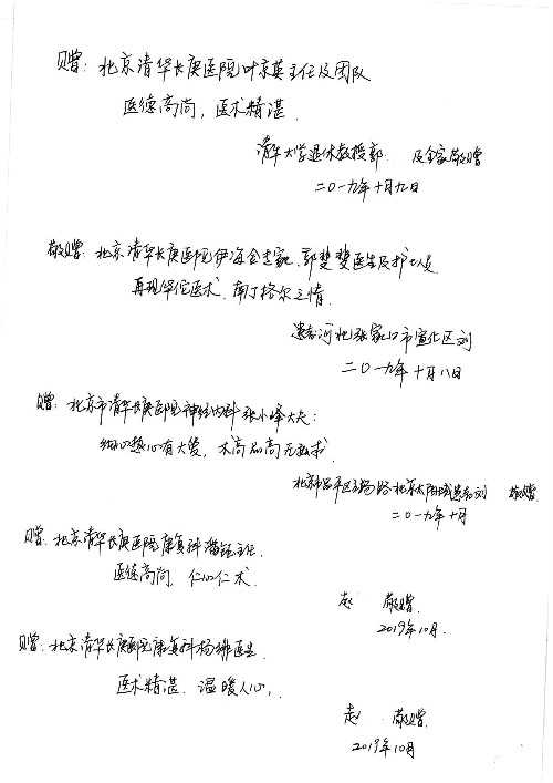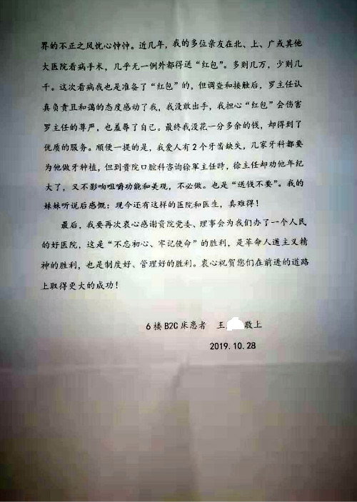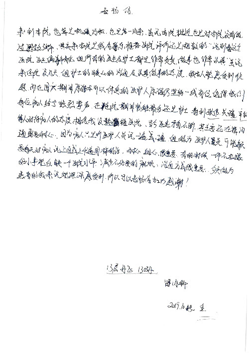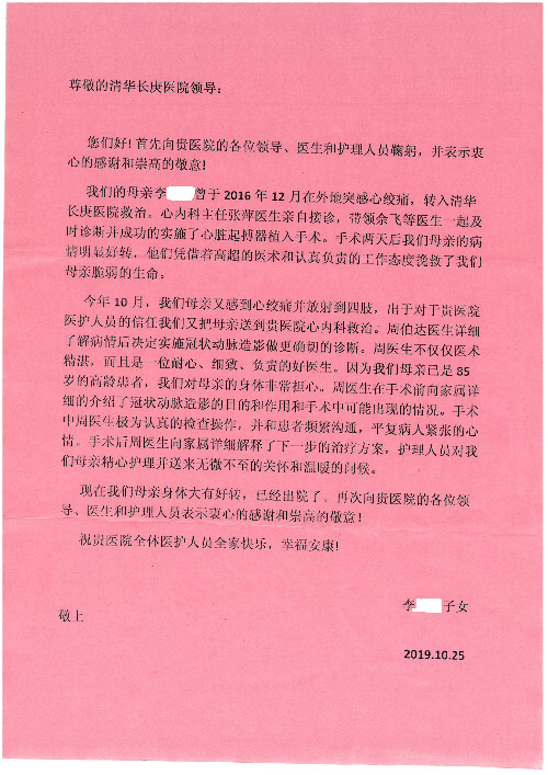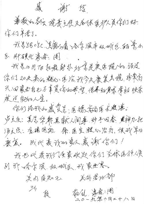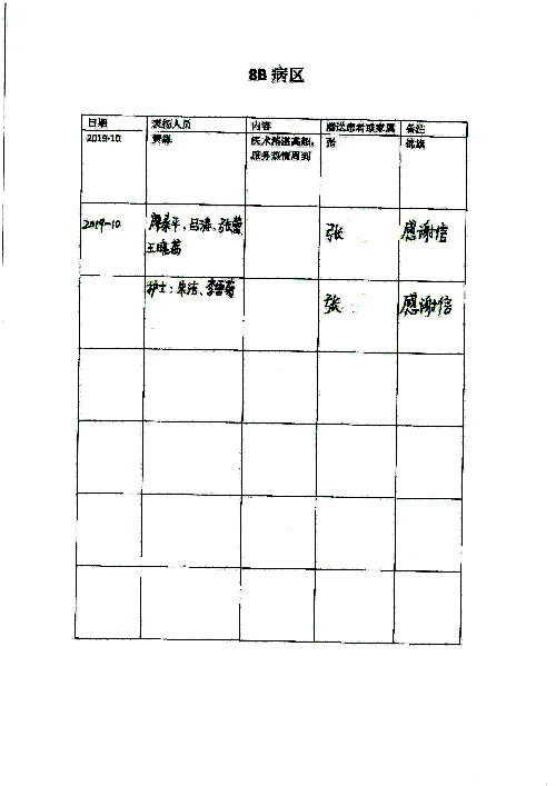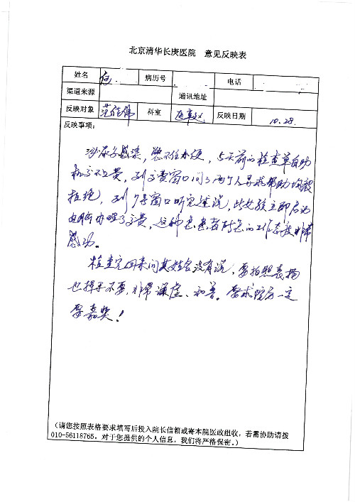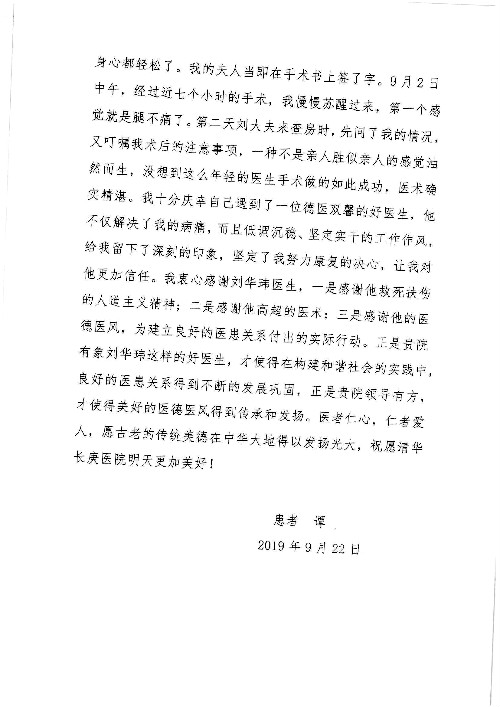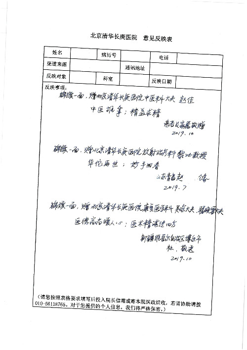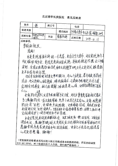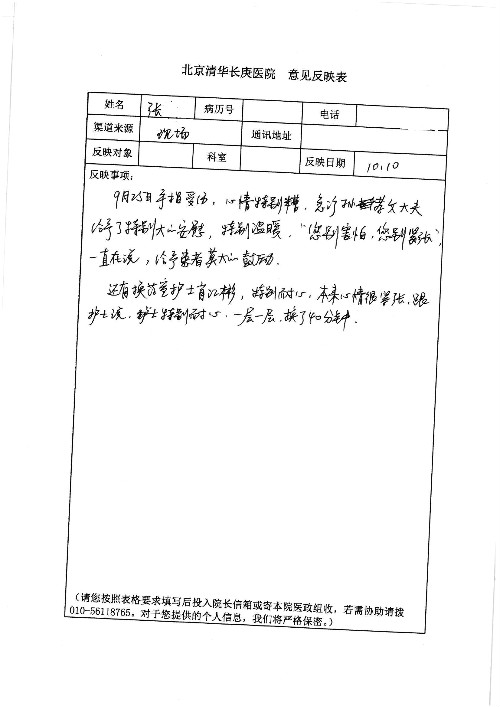 2019年10月,我院共接到患者及家属感谢信28封,锦旗33面,匾额2个,水晶奖杯1个;其中肝胆胰中心董家鸿主任医师、黄缘主任医师、张跃伟主任医师、卢倩副主任医师、徐光勋副主任医师、冯晓彬副主任医师、杨明副主任医师、汤睿主治医师、公磊主治医师、苏日嘎医师、谢思医师、吴广东医师、于里涵医师、刘江医师;耳鼻咽喉头颈外科叶京英主任医师、伊海金主任医师、郭斐斐医师、张云云医师;骨科顾苏熙主治医师、刘华玮主治医师;全科医学科王仲主任医师;神经内科赵蕾副主任医师、张小峰主治医师;普通外科罗斌主任医师;胃肠外科李元新主任医师、刘伯涛主治医师、孙孝文主治医师;泌尿外科李建兴主任医师;心脏内科张萍主任医师、缪国斌主任医师、佘飞副主任医师、刘元伟副主任医师、何榕副主任医师、薛亚军主治医师、周博达主治医师、张鸥医师、沈懿医师、杨靖医师、王晓晶医师、袁亦方医师、孟昌医师、翟彦龙技师、李唐技师;呼吸与危重症医学科李理医师;康复医学科潘钰主任医师、吴琼主治医师、杨绯医师、翟晓雪医师、冯雨桐医师、李颜杝治疗师、尹航技师、樊森朝技师、程丹丹技师、王文旭技师、马迪技师、林婉玉技师、庞雪技师、实习生:胡静、秦雨、王玉卿、李美娇,放射治疗科黎功主任医师;眼科郭立斌副主任医师、刘瑄副主任医师,消化内科李恕军主任医师、刘佳文主治医师,普通内科王逸群副主任医师、冯莉莉主治医师、李妮医师, 妇产科廖秦平主任医师、张蕾副主任医师、吕涛副主任医师、王晓茜主治医师、文佳医师、冯宗昊医师;儿科晁爽副主任医师,口腔科聂小汉主治医师、蒲媛护士,中医科赵佳技师,内分泌科赵文惠副主任医师;医患办赵晓兰,医事处杨新蕊、范佳伟,护理部:韩成璐、汪爱华、朱洁、李雪菊、肖江彬、韩杰、荆红英、张伟、吴璠、辛铜,肝胆胰中心全体医护人员、急诊全体医护人员、神经内科全体医护人员、心脏内科全体医护人员、普通外科全体医护人员、耳鼻咽喉头颈外科全体医护人员、儿科全体医护人员、妇产科全体医护人员、康复医学科全体医护人员、13A全体护理人员收到具名表扬。特此公告,以资鼓励!