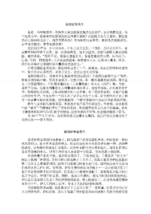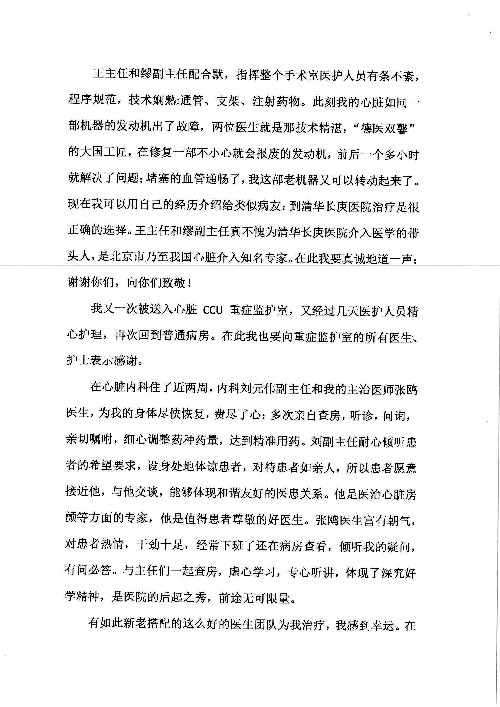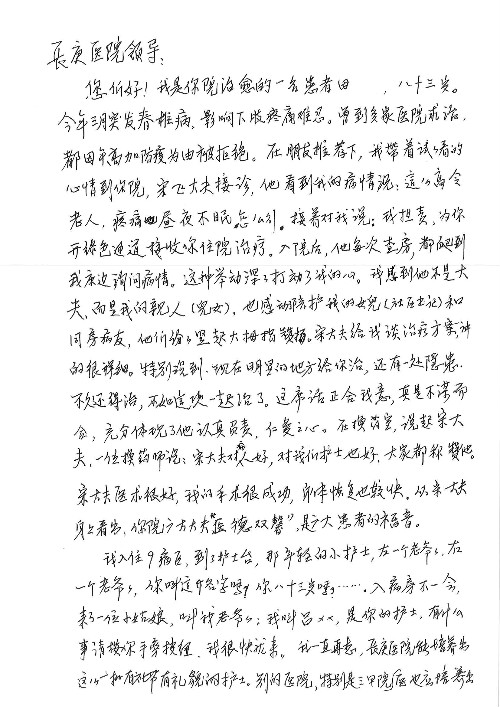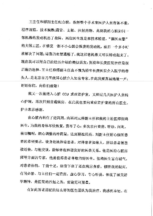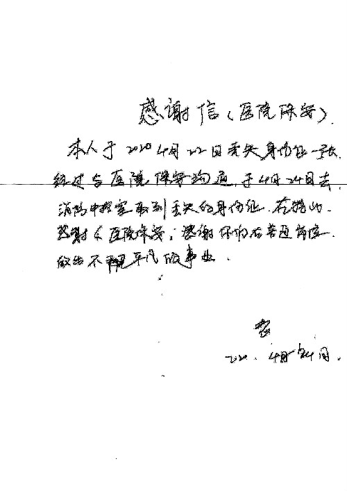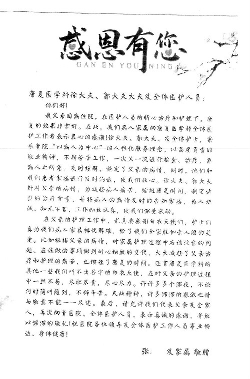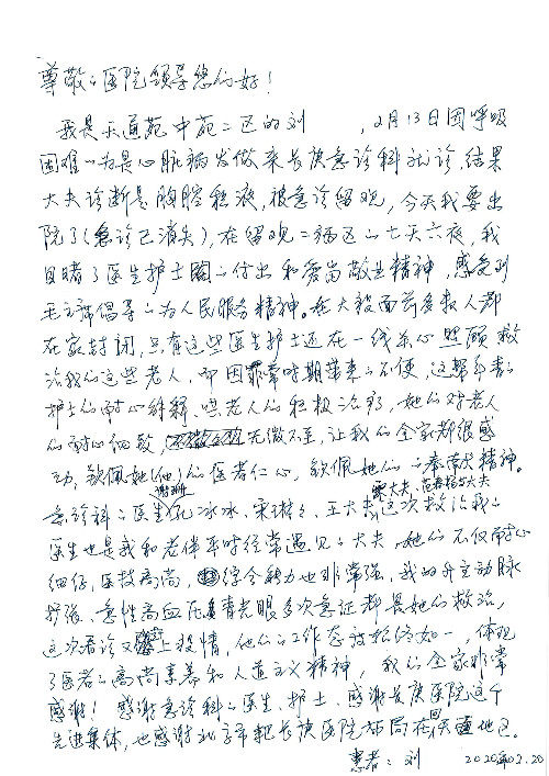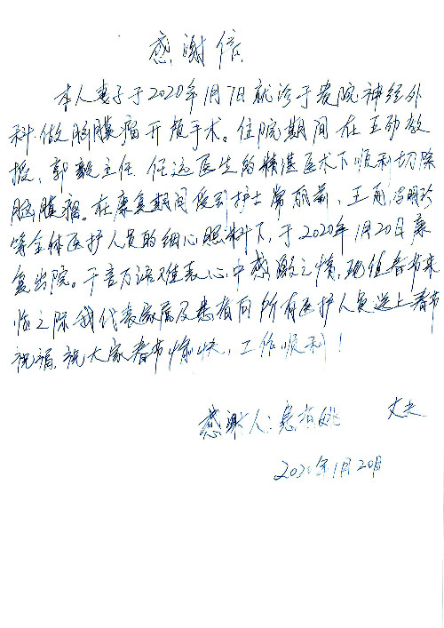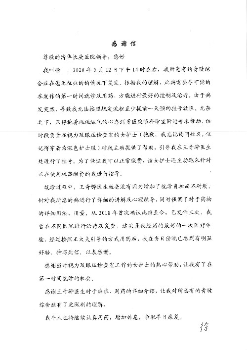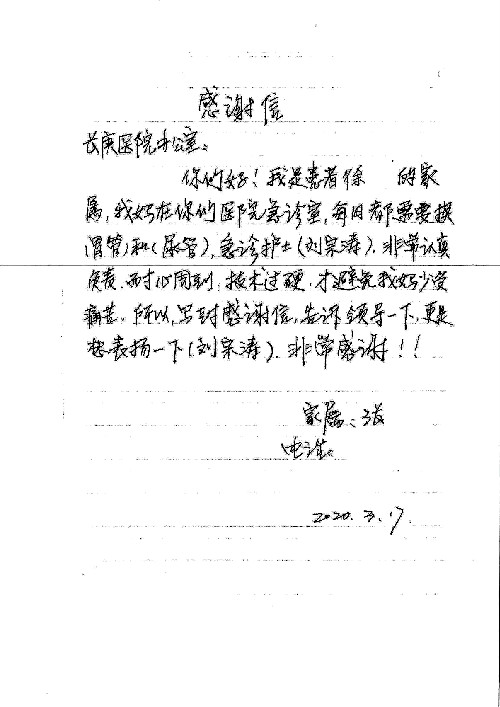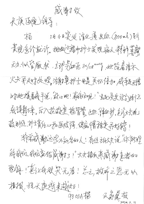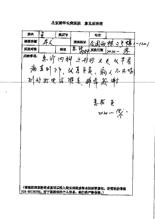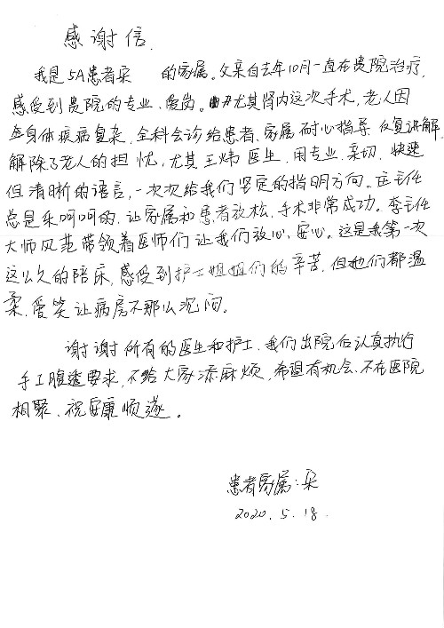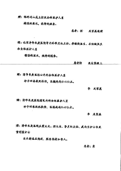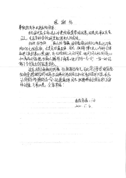 公告北京清华长庚医院患者及家属感谢信【2020年4-5月份】